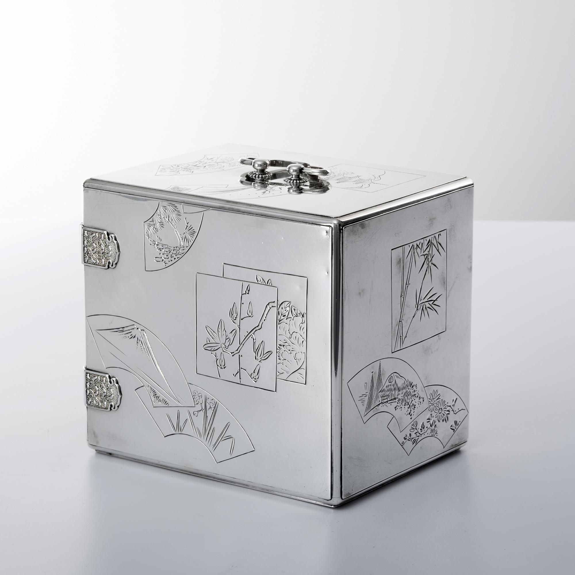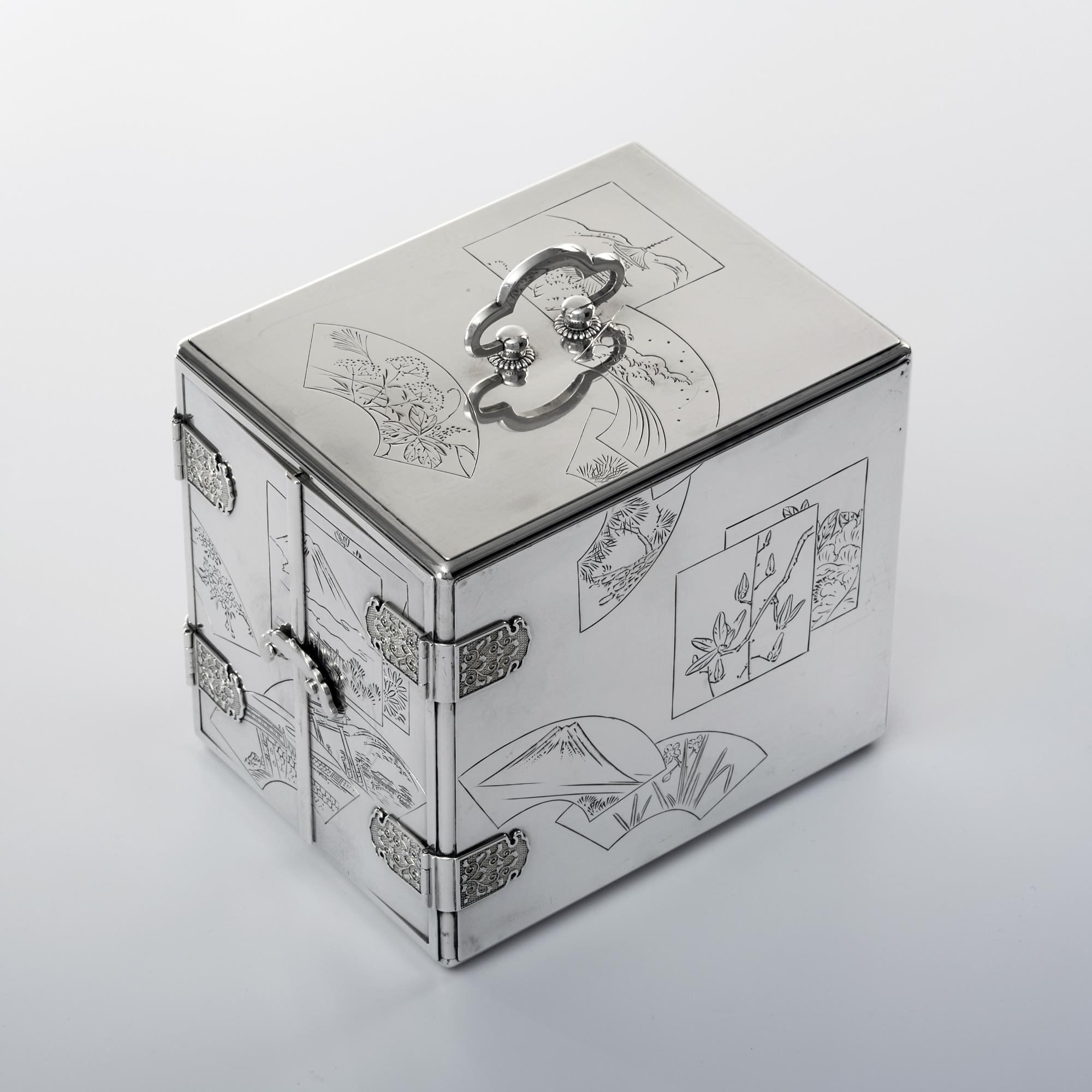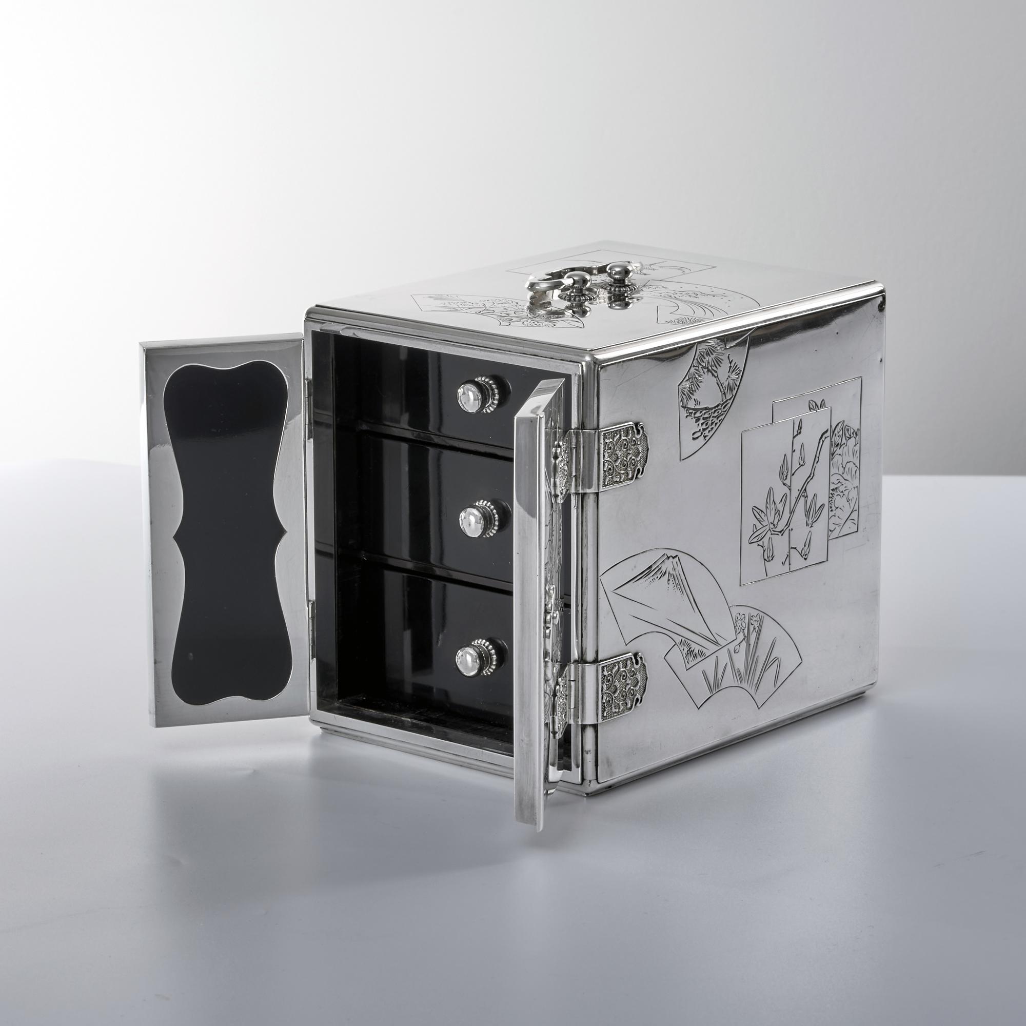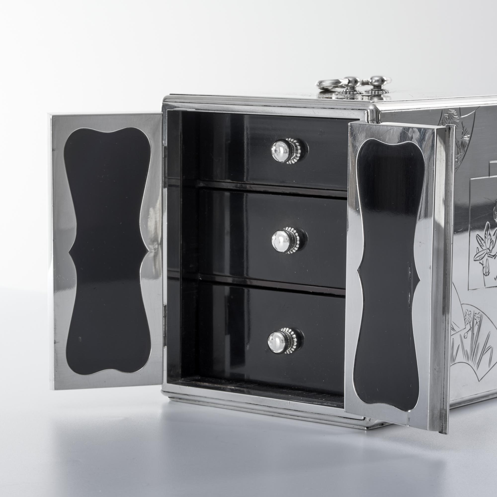 Handmade 3-drawer Japanese Meiji silver jewel box