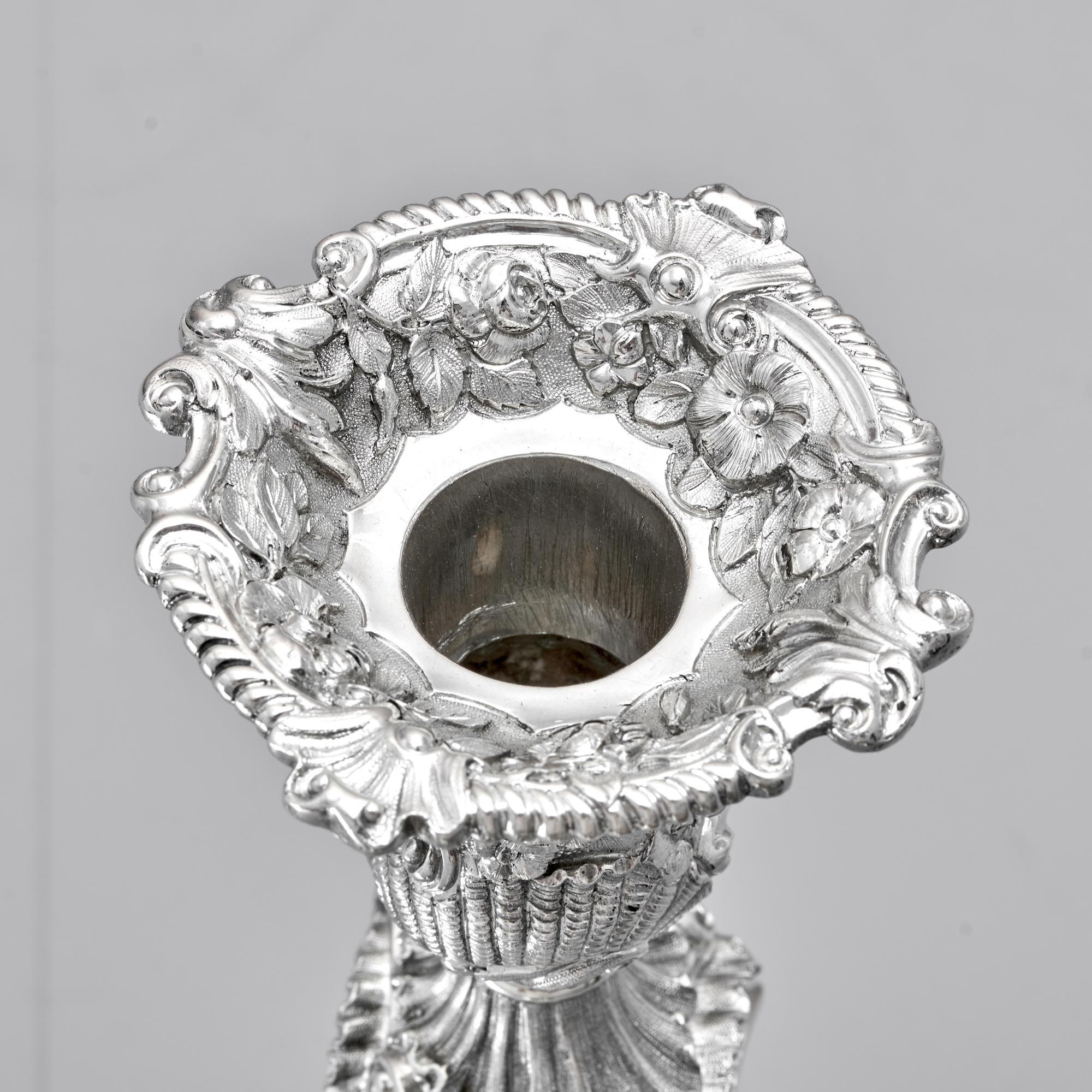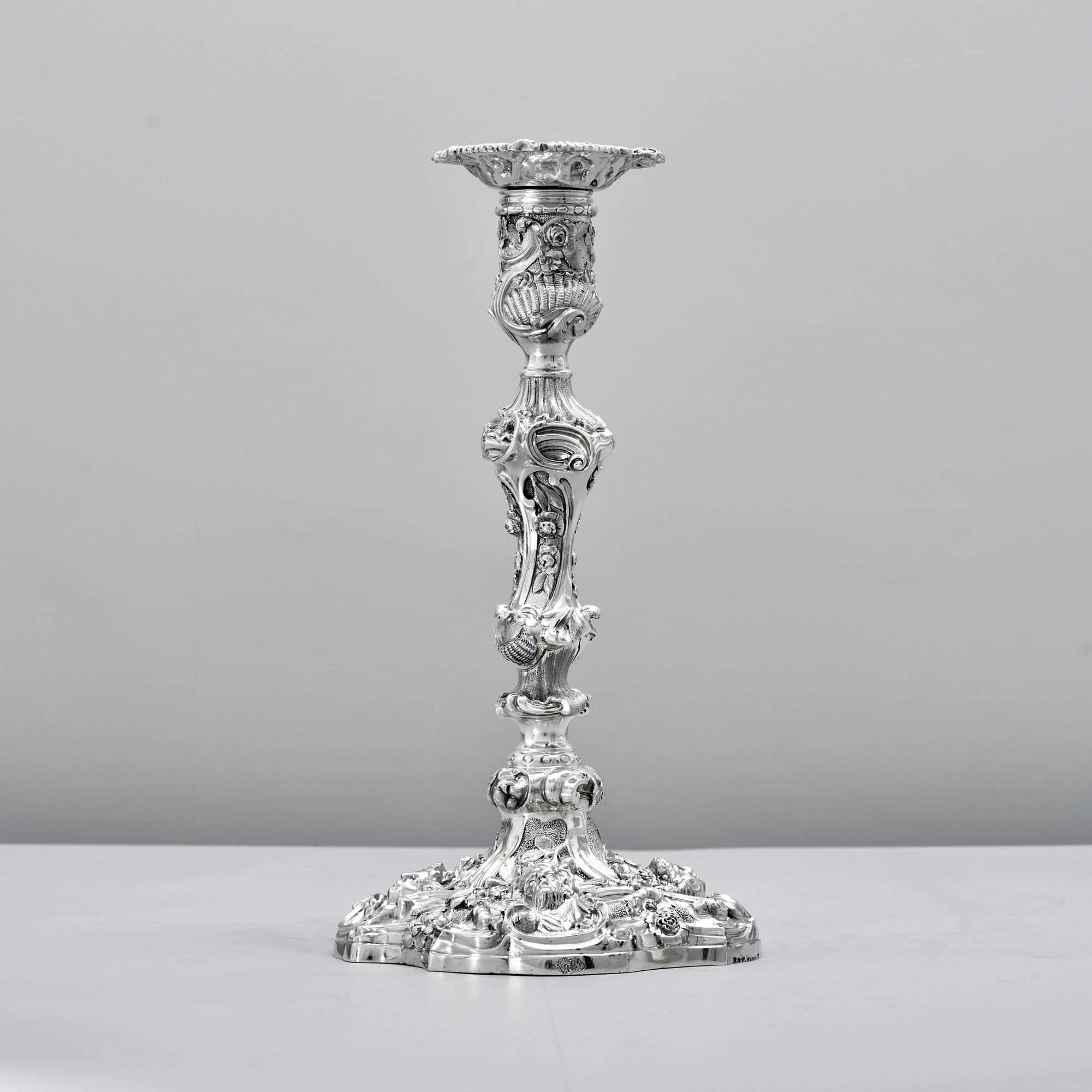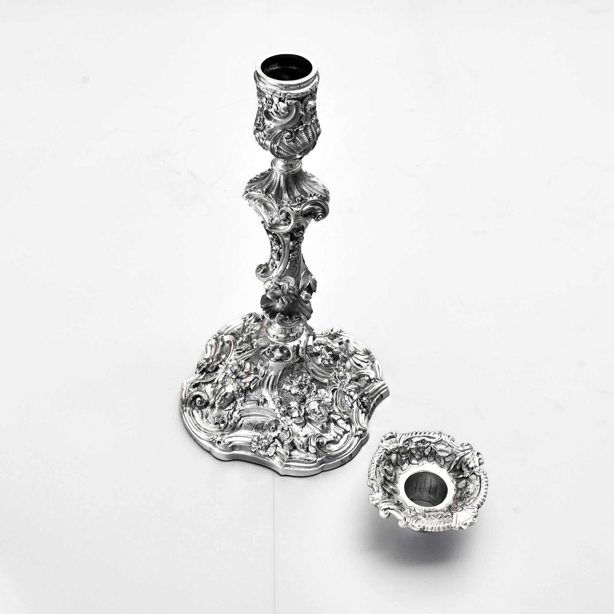 This pair of cast silver candlesticks is not available to purchase online.  Please contact us if you would like more information or are interested to buy it.