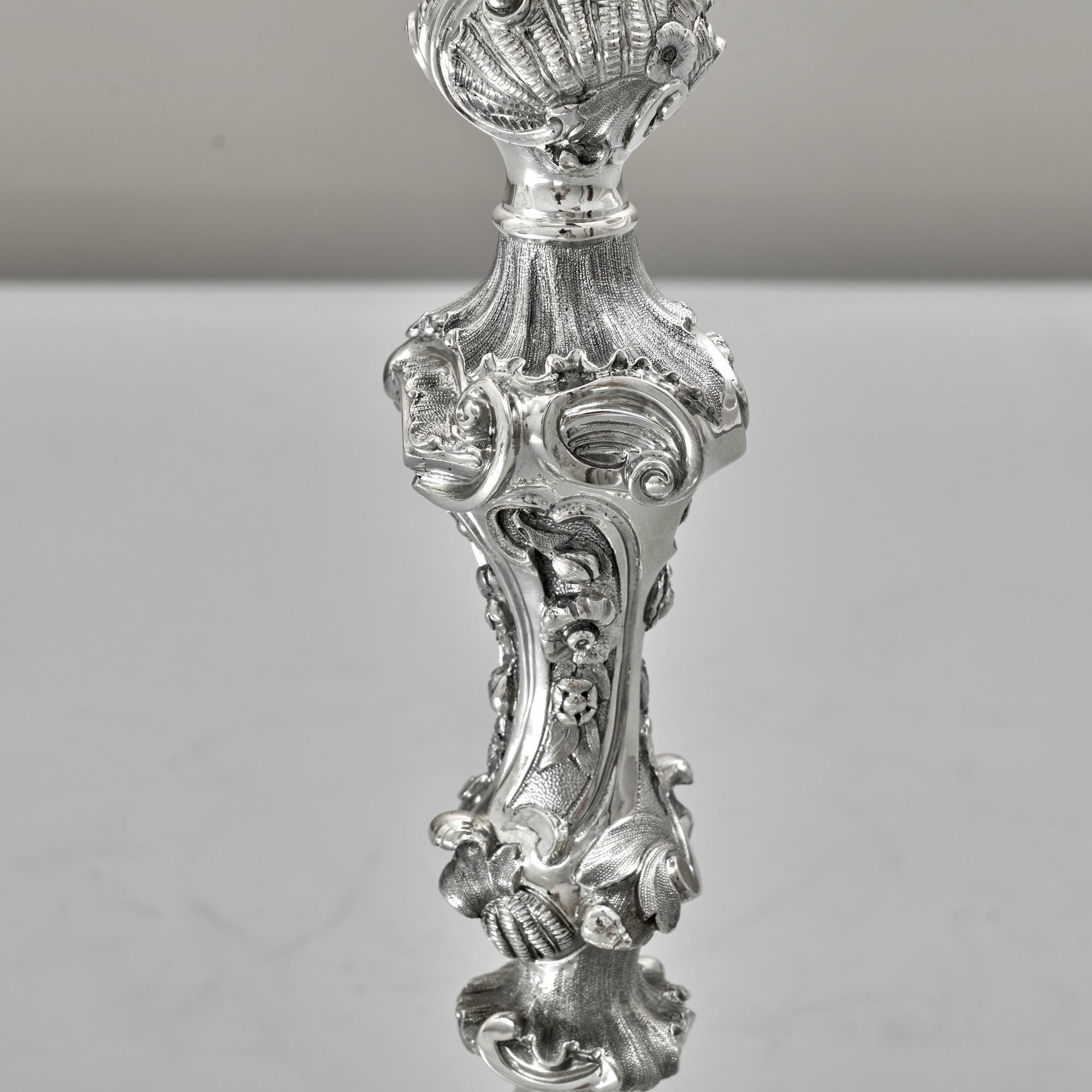 - Pair of impressive antique cast silver candlesticks by royal silversmith