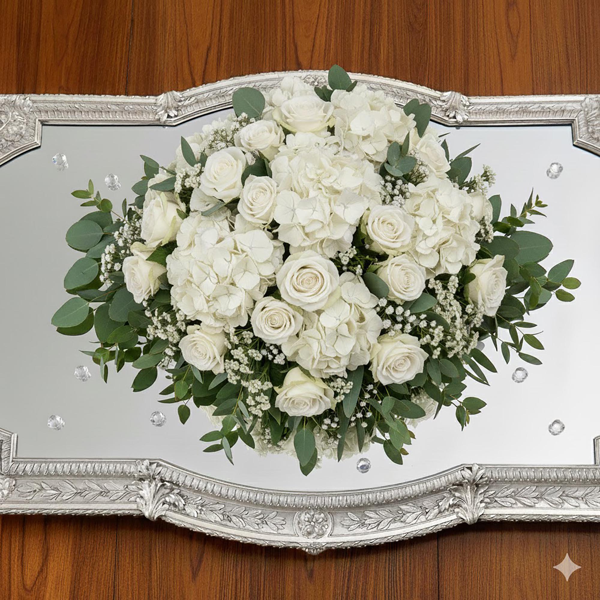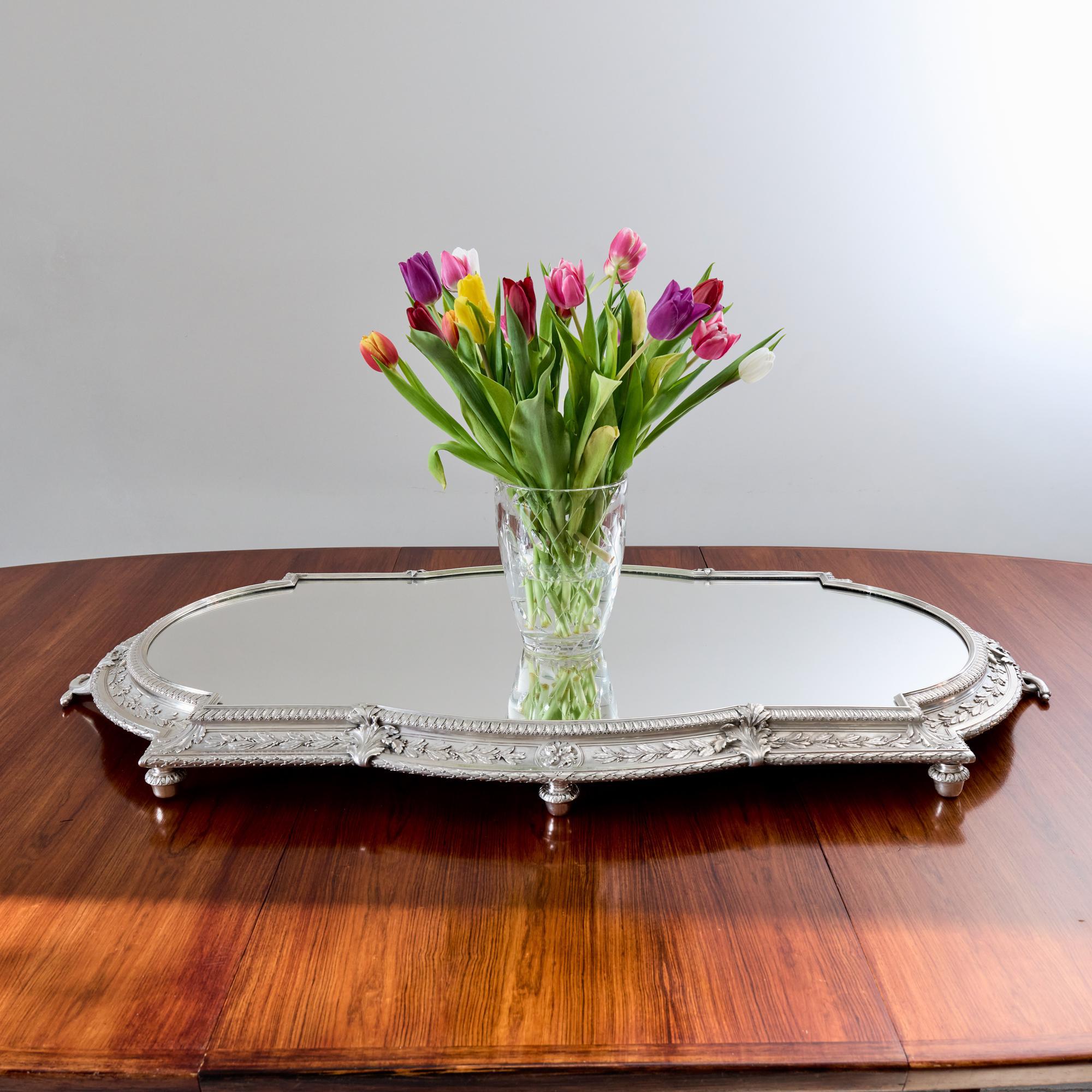 A special table centrepiece in its own right, the plateau would be also be perfect dressed with a large silver jardinière or épergne centrepiece. The mirrored glass is 945 mm x 480 mm (37" x 19").