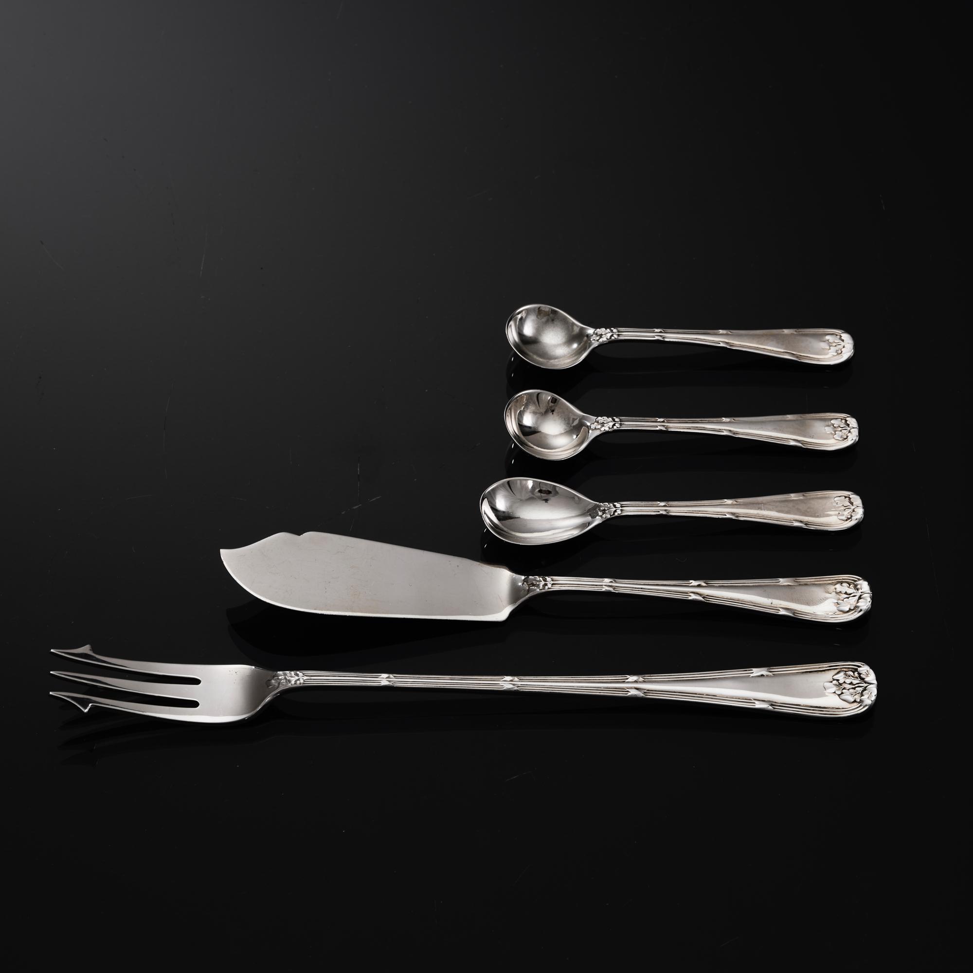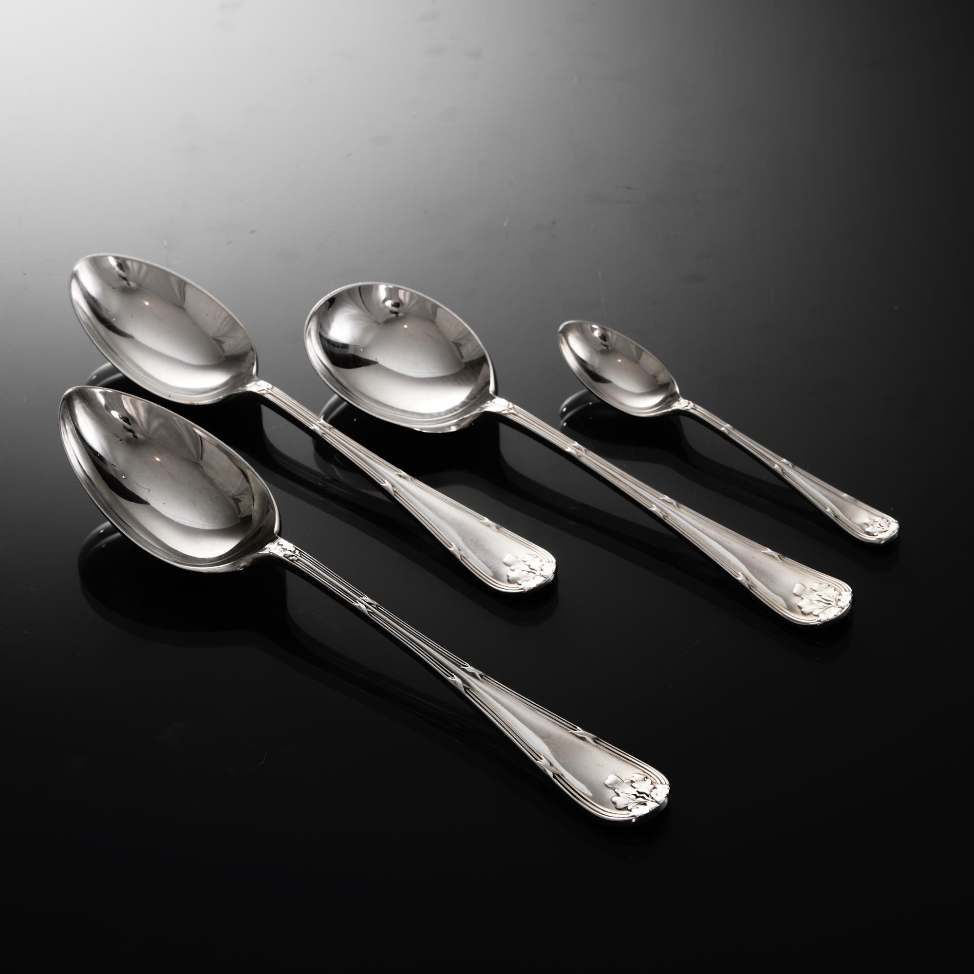 Canteen set of Ribbon Reed & Oakleaf sterling silver cutlery for 12
