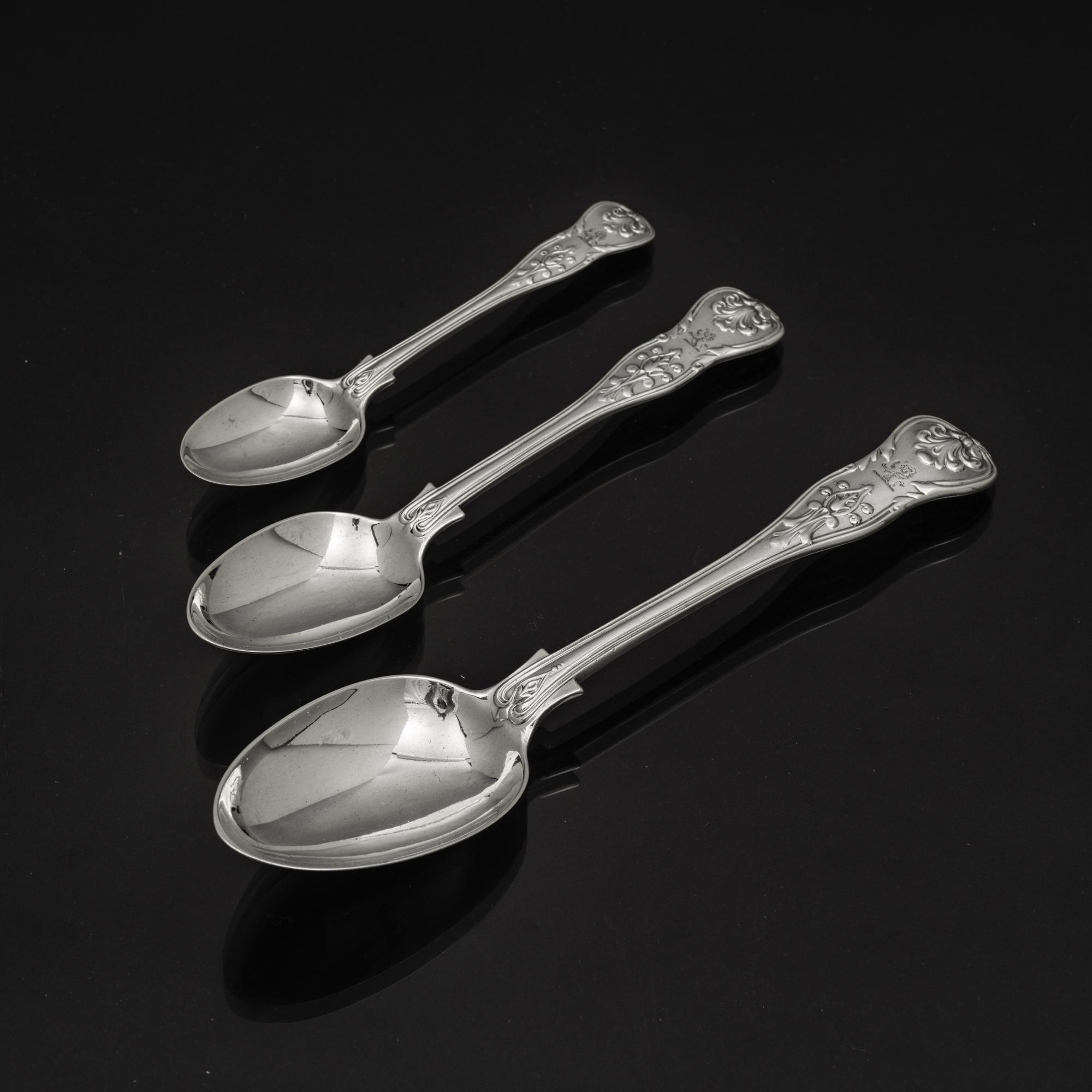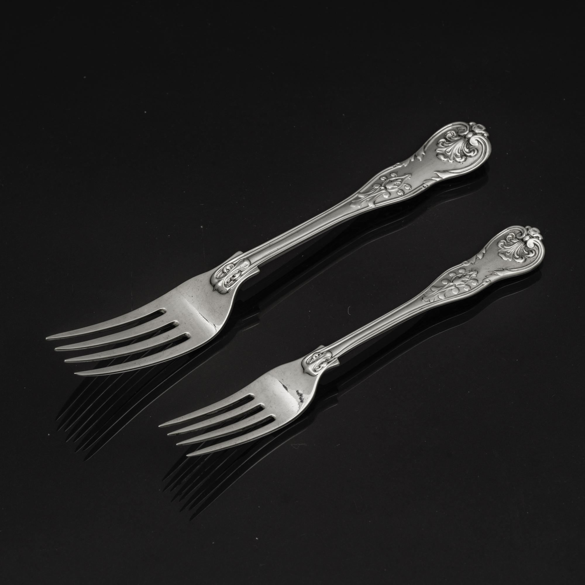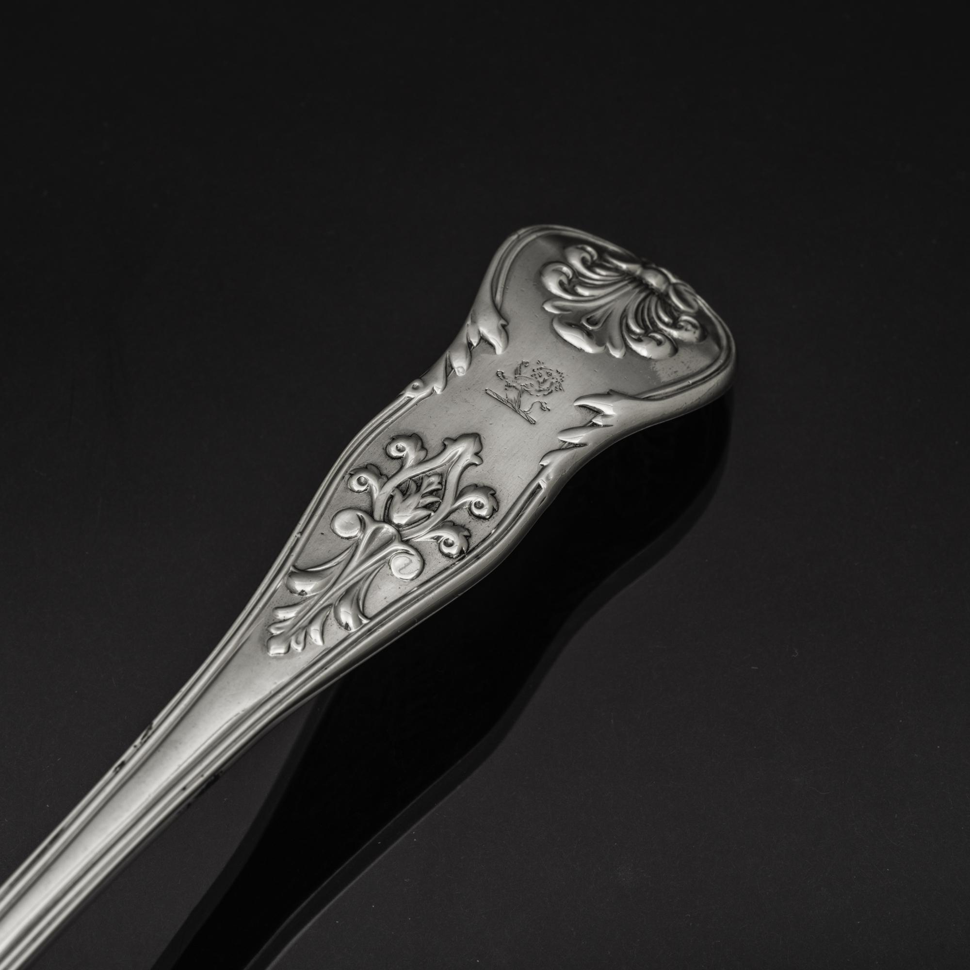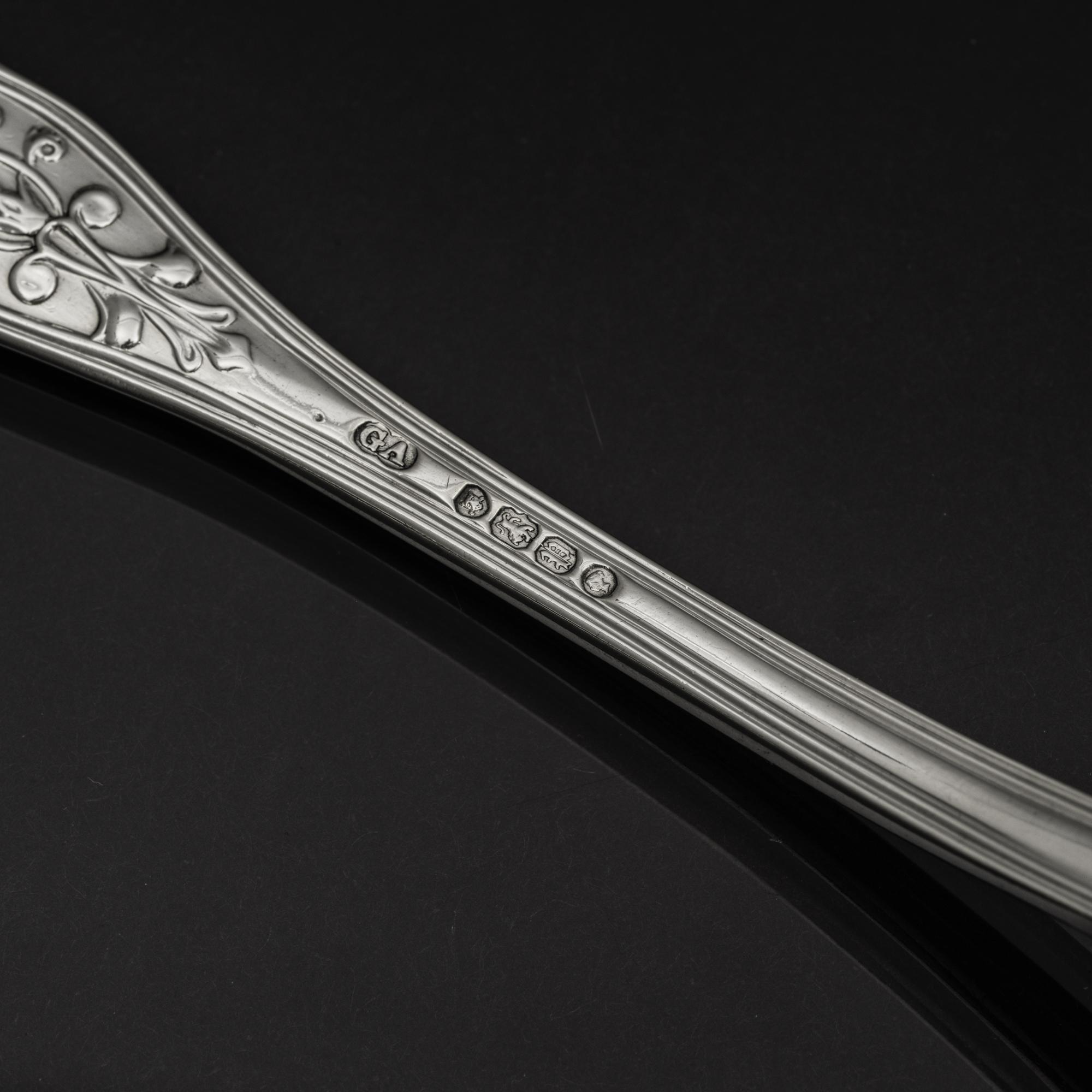 Princess No 2 is a rare and much sought after 19th century pattern and a variant of the King's shape family of cutlery patterns. The design was a private pattern, exclusively made by the workshop of George Adams, hence not many sets were made or are available. This fine service is in good, usable condition; the bowls of the spoons and the fork prongs are thick and durable.