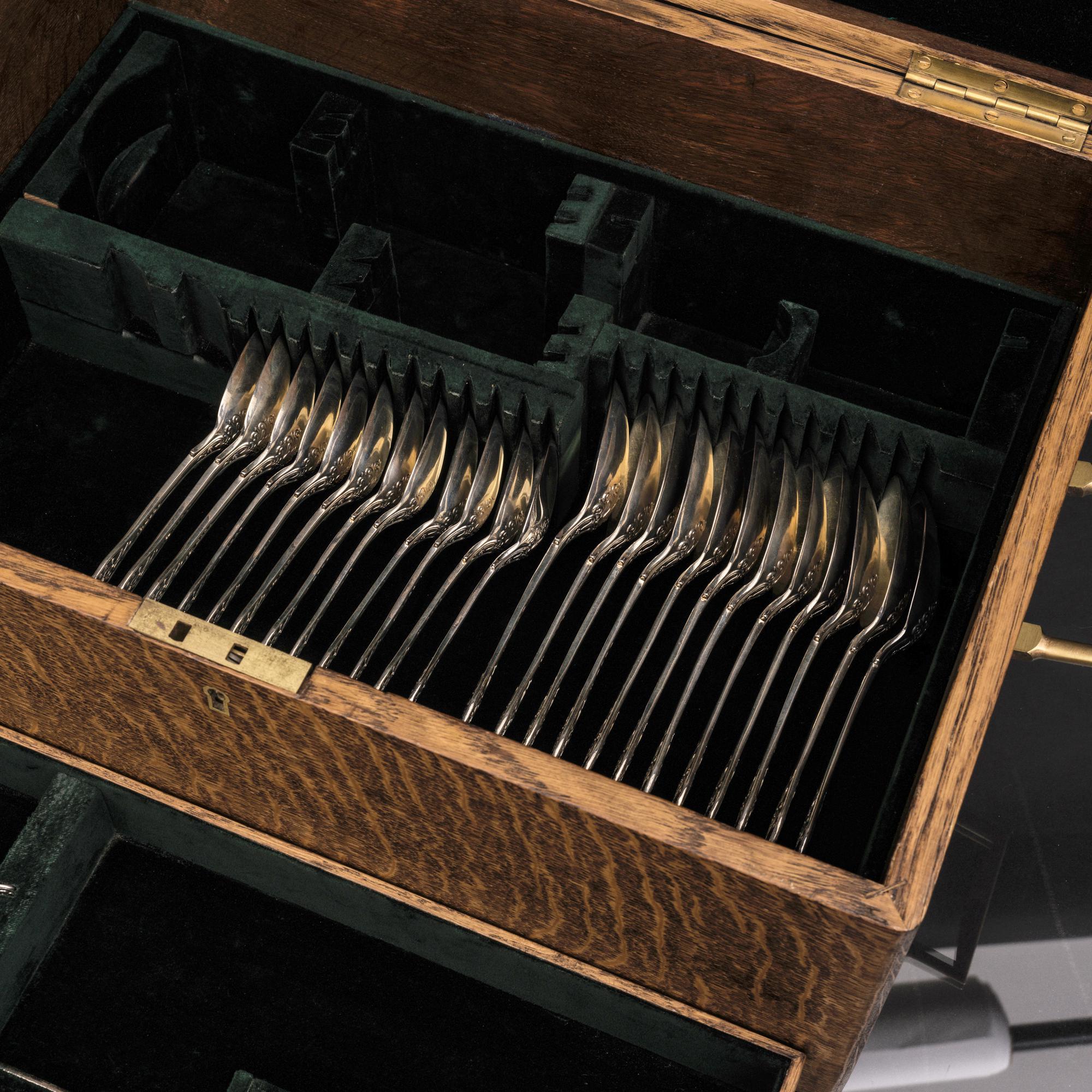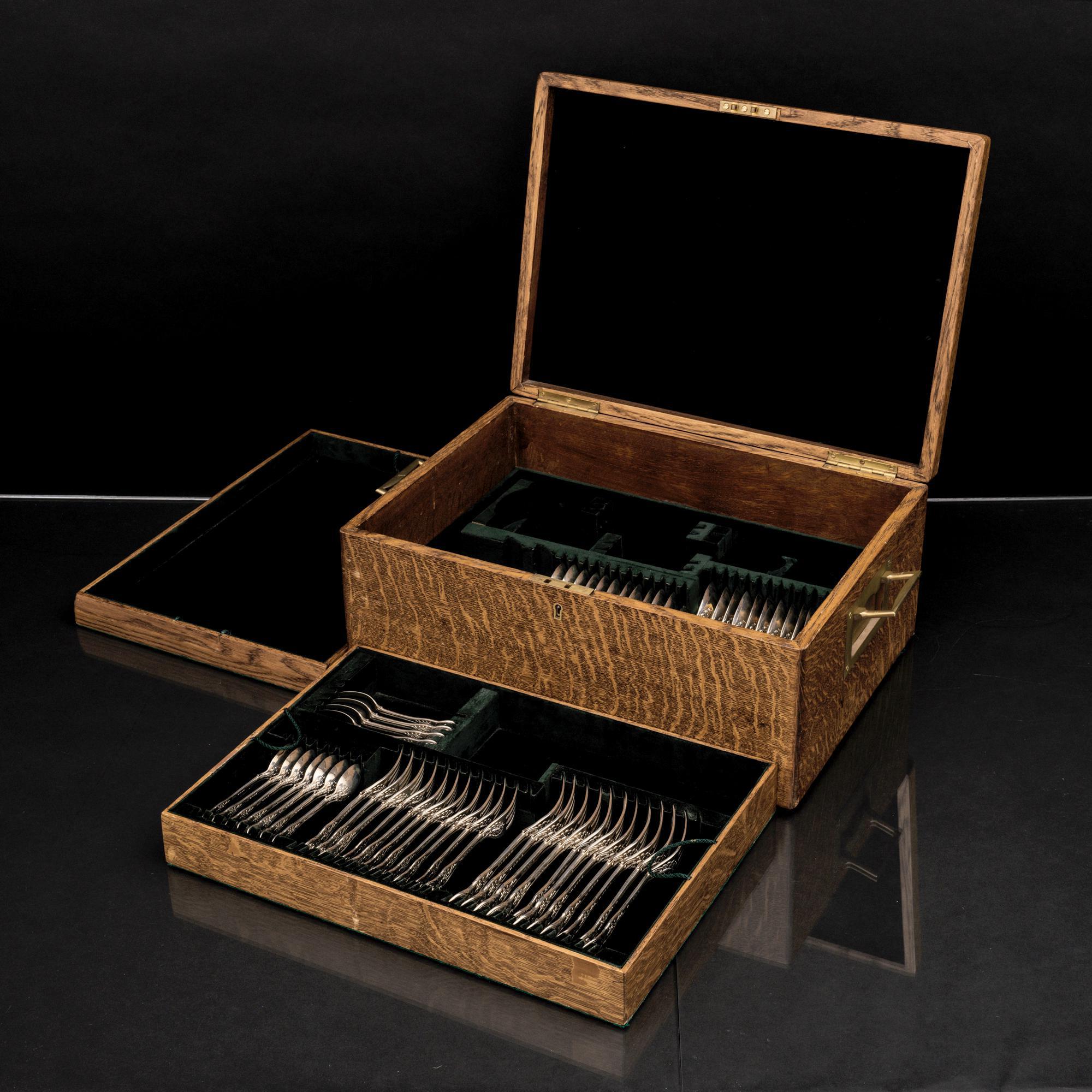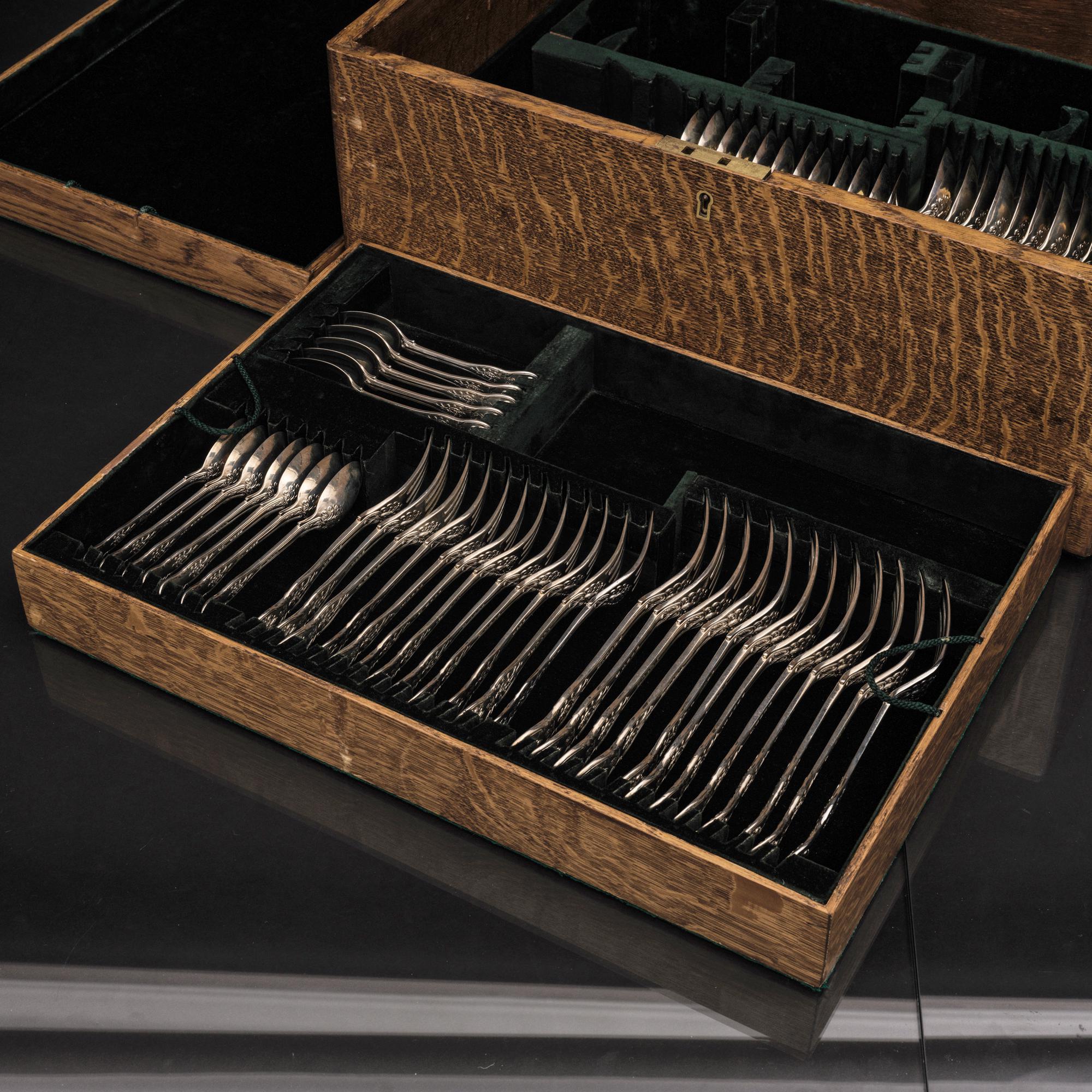 Rare set of hand-forged Princess No 2 silver cutlery for 12 in fitted canteen