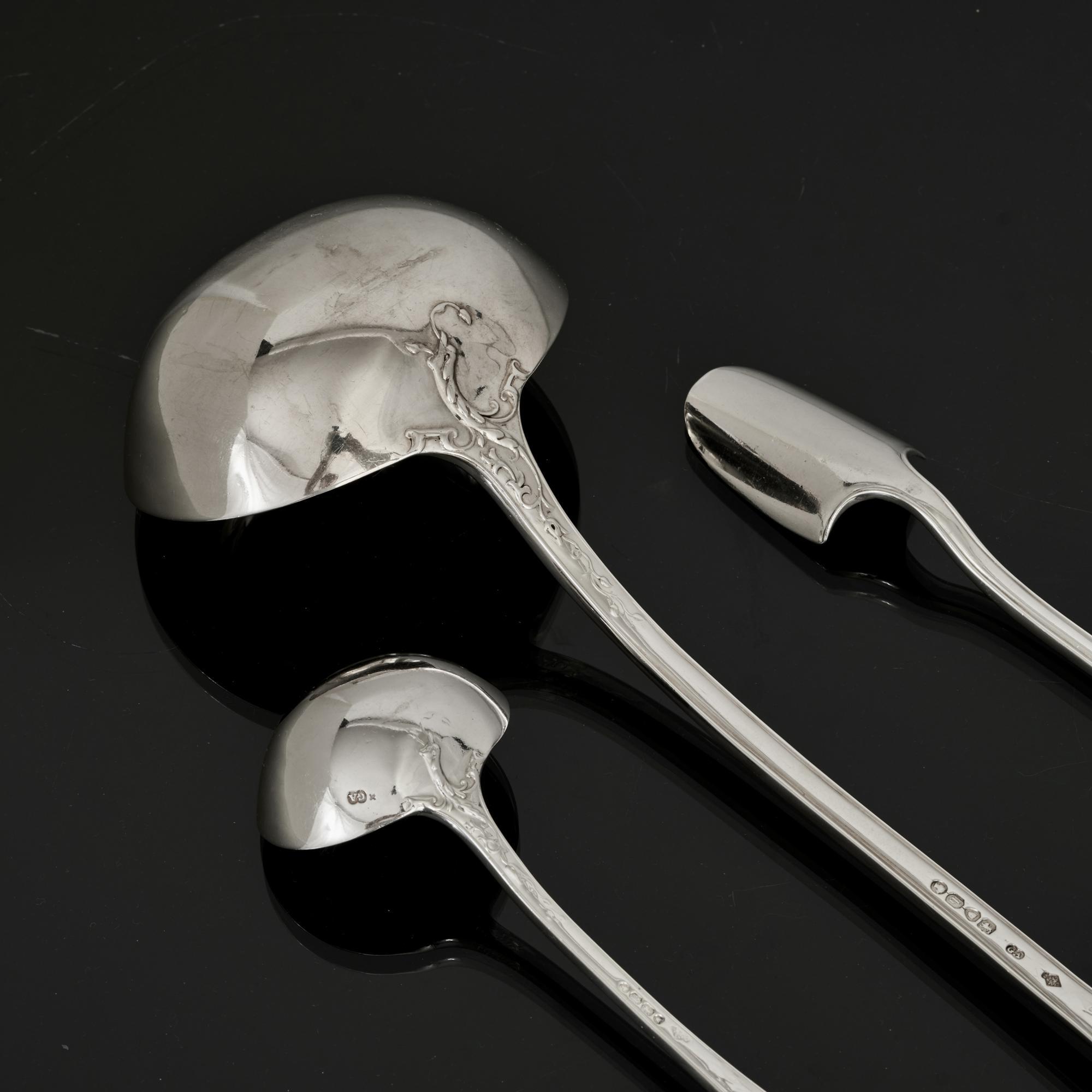 Rare set of Victorian hand-forged Paxton pattern sterling silver cutlery for 12