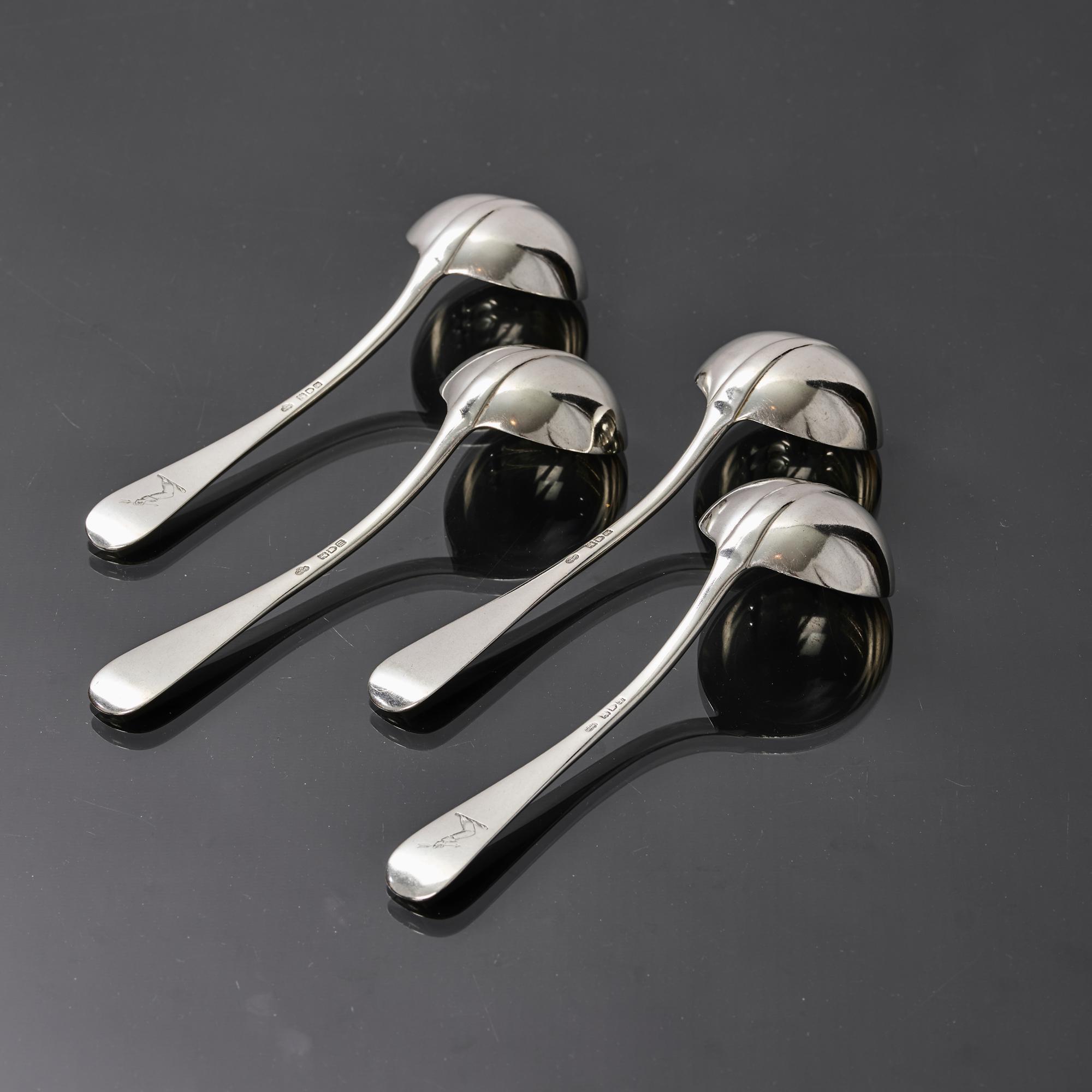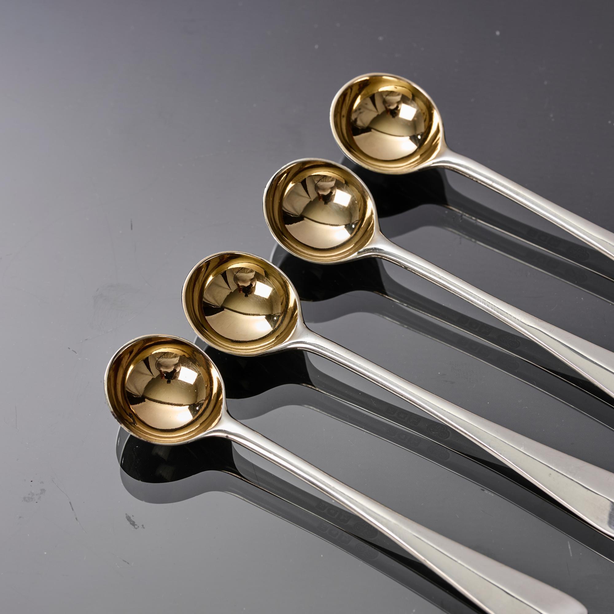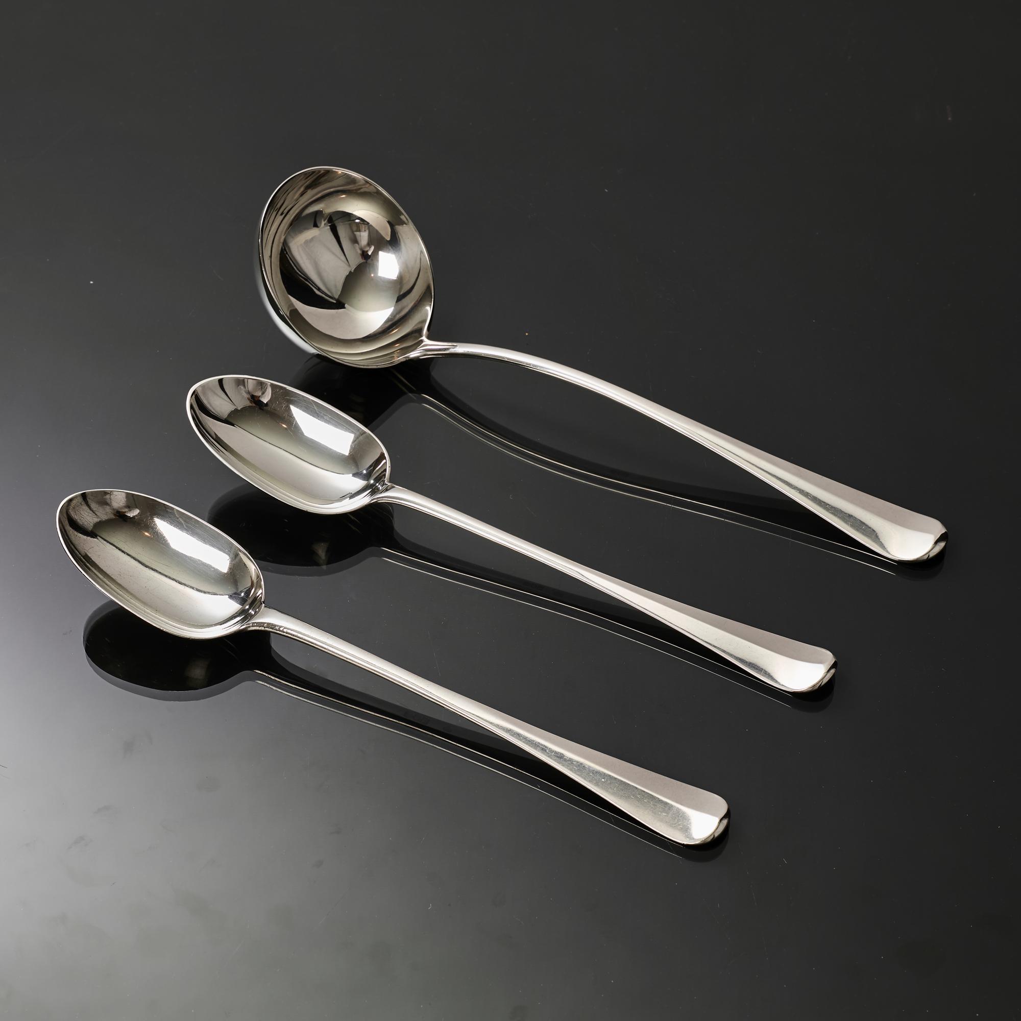 - Set of antique Edwardian hand-forged 4-prong Rattail pattern silver cutlery for 24