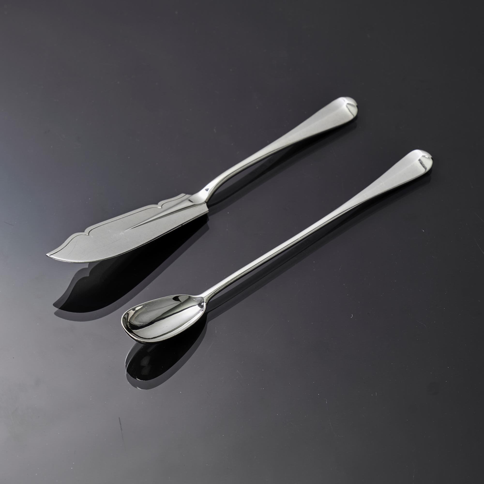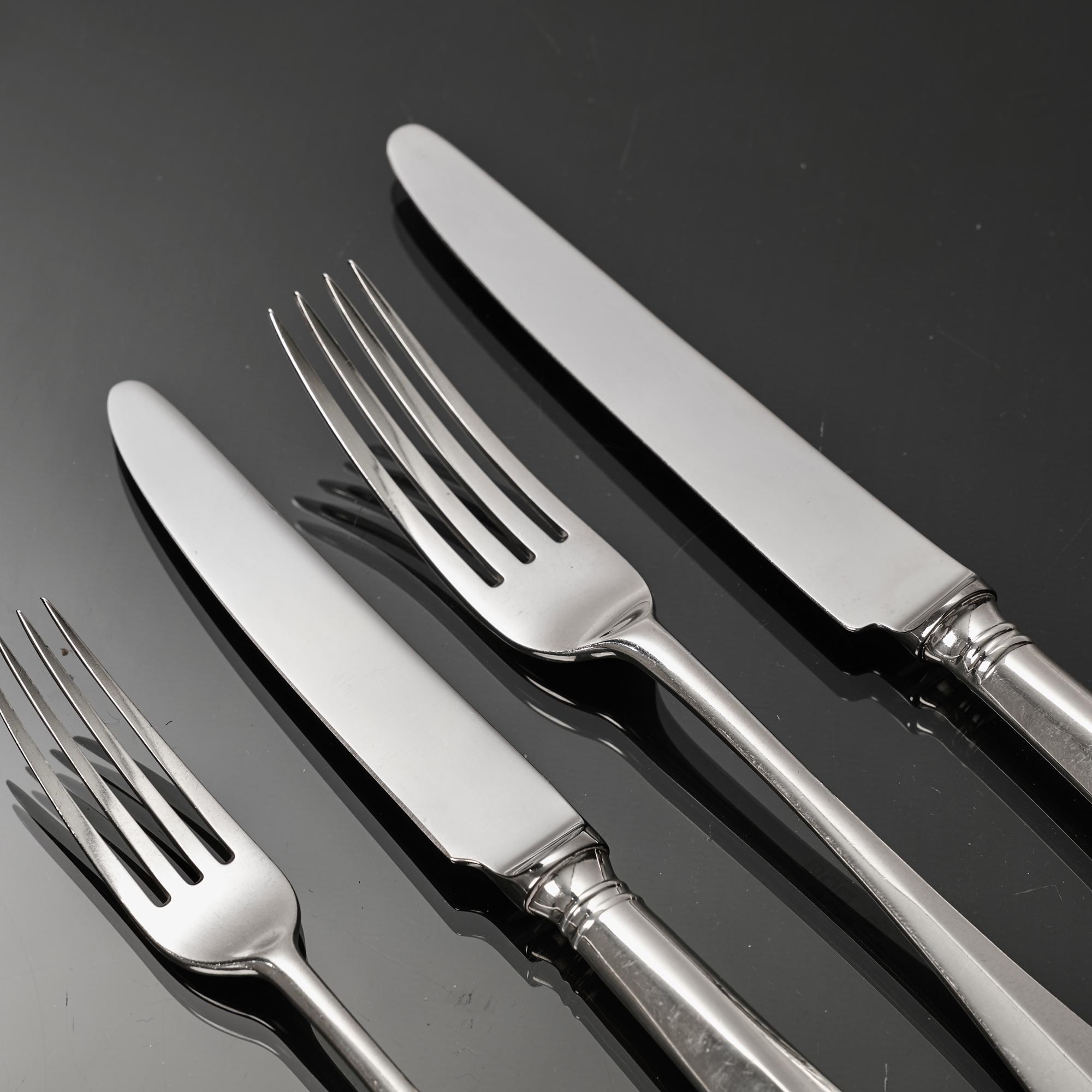 *Since antique knives rarely survive, this cutlery set includes matching heavy-quality modern knives with silver handles and stainless steel blades, making them suitable for putting in the dishwasher.