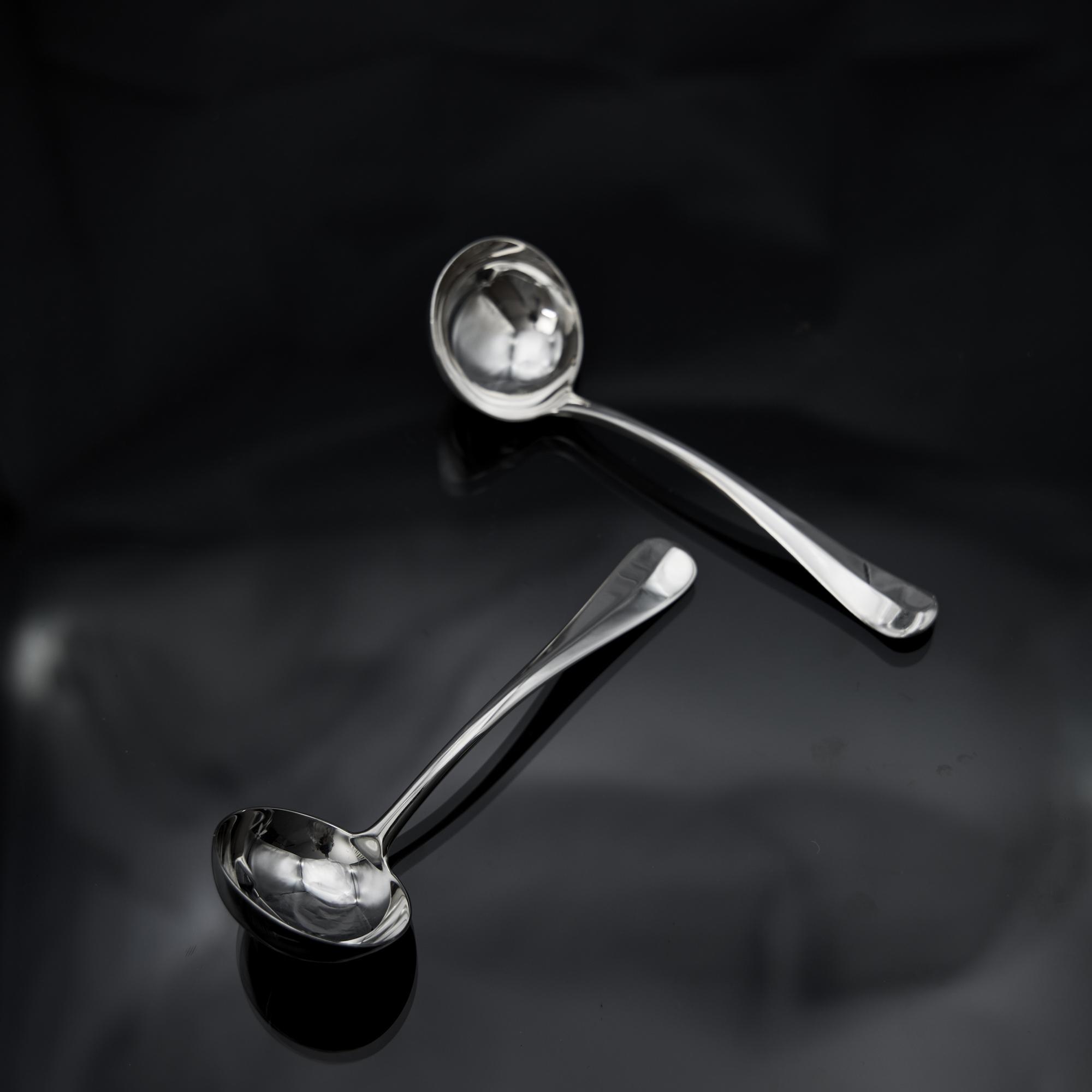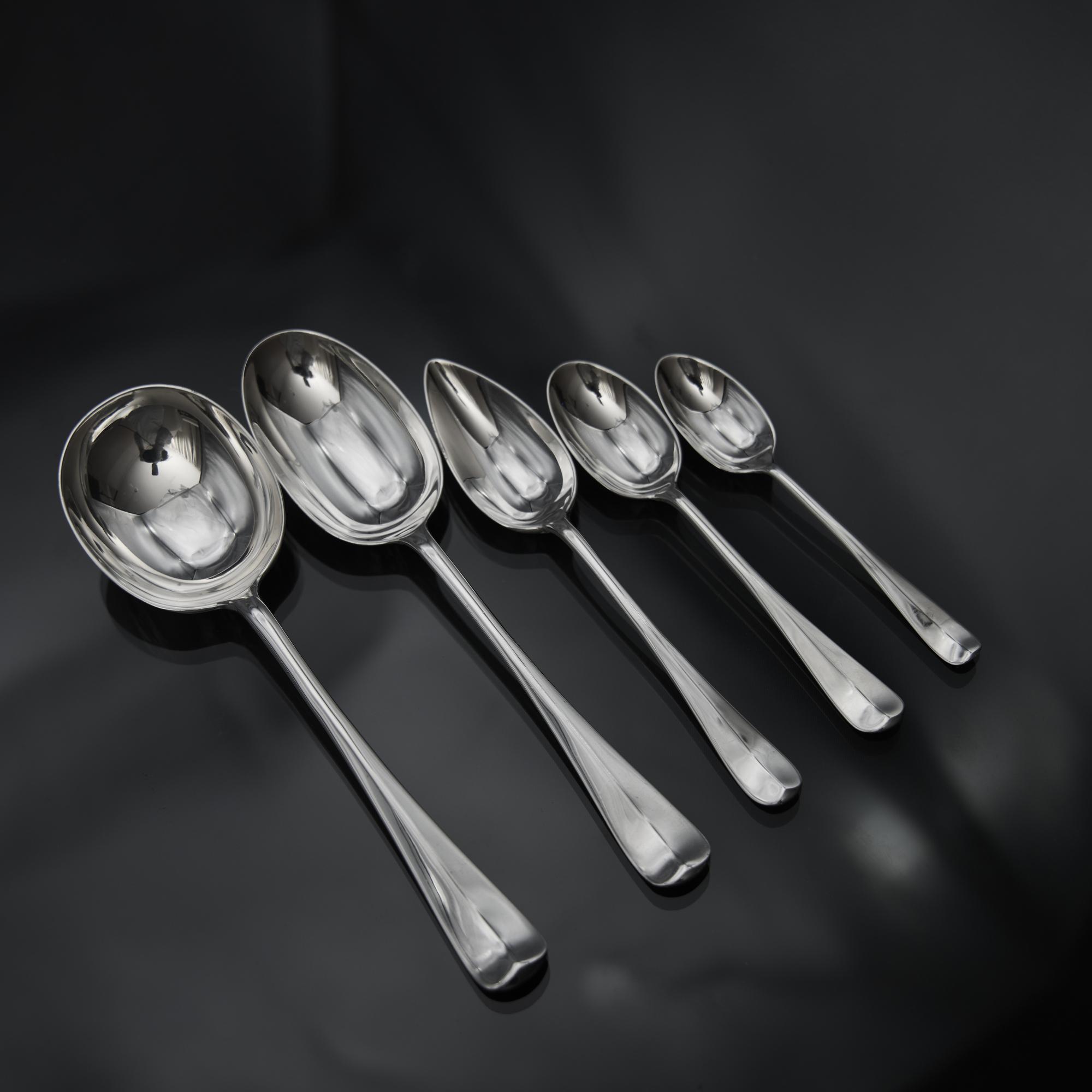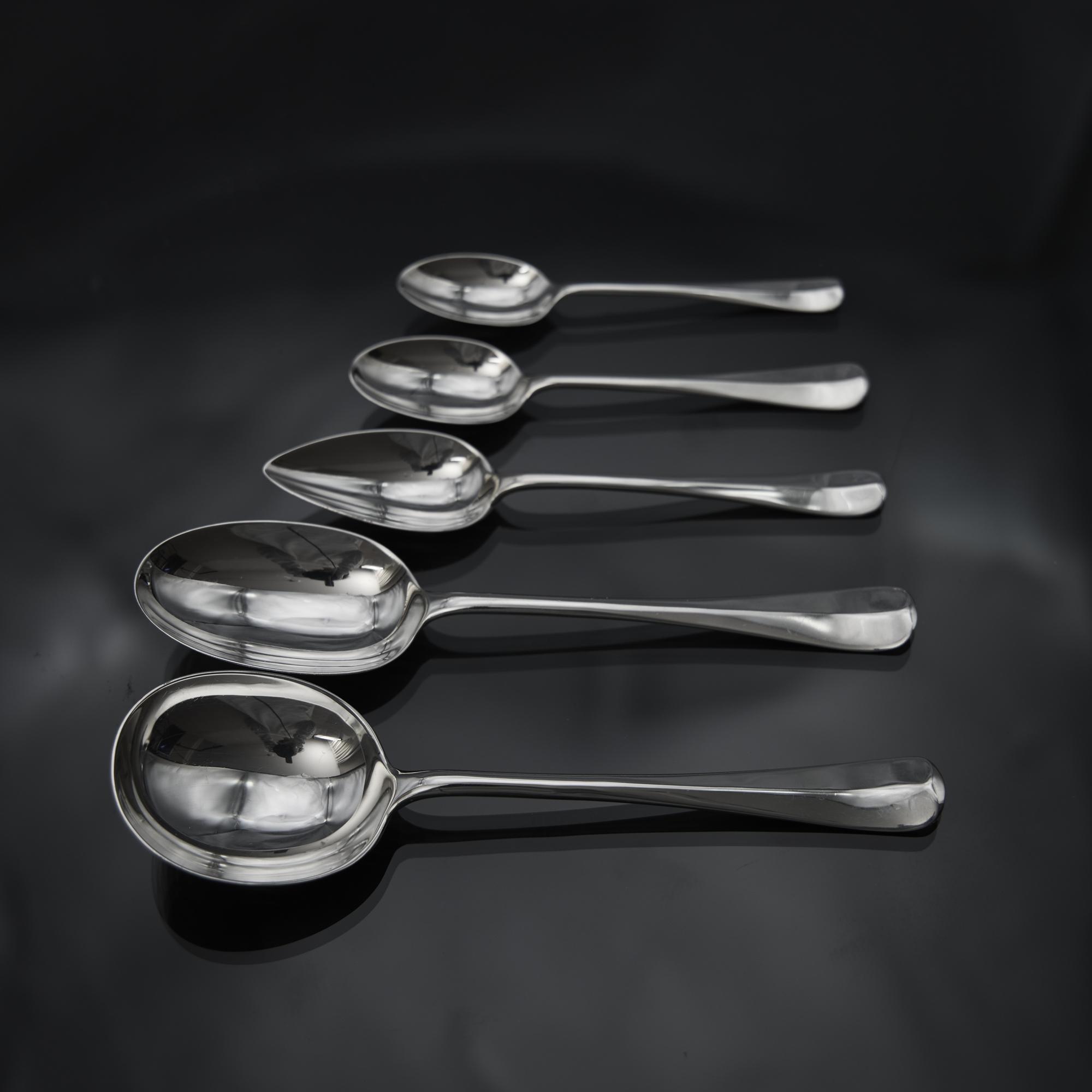 Rattail is the oldest of the English designs dating from the early 1700s with the distinctive "rat tail" on the backs of the spoon bowls and forks. This feature developed in an age when craftsmen made spoons in two pieces joining the bowl and the handle together by means of soldering using a tapered tail as additional strength to the joint. This design also features a prominent rib down the front of the handle and continues to be a popular design to the present day.