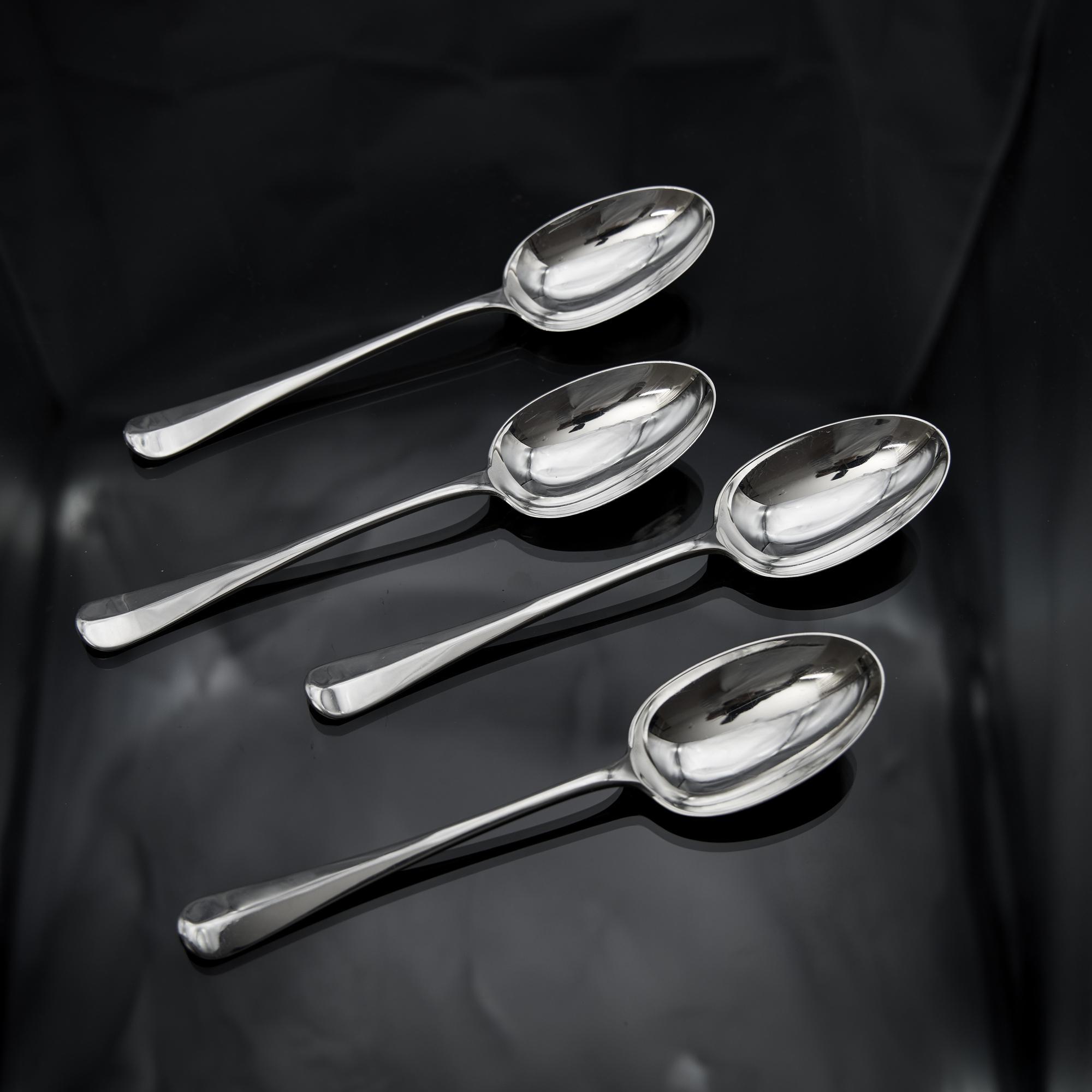 Set of hand-forged 4-prong Rattail pattern sterling silver cutlery for 12 in canteen
