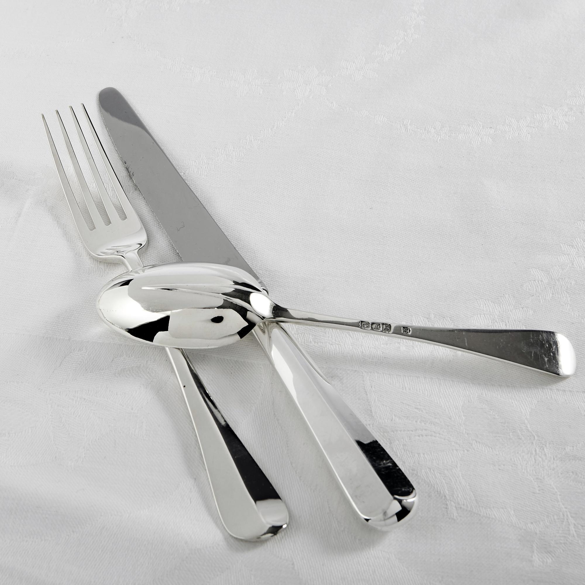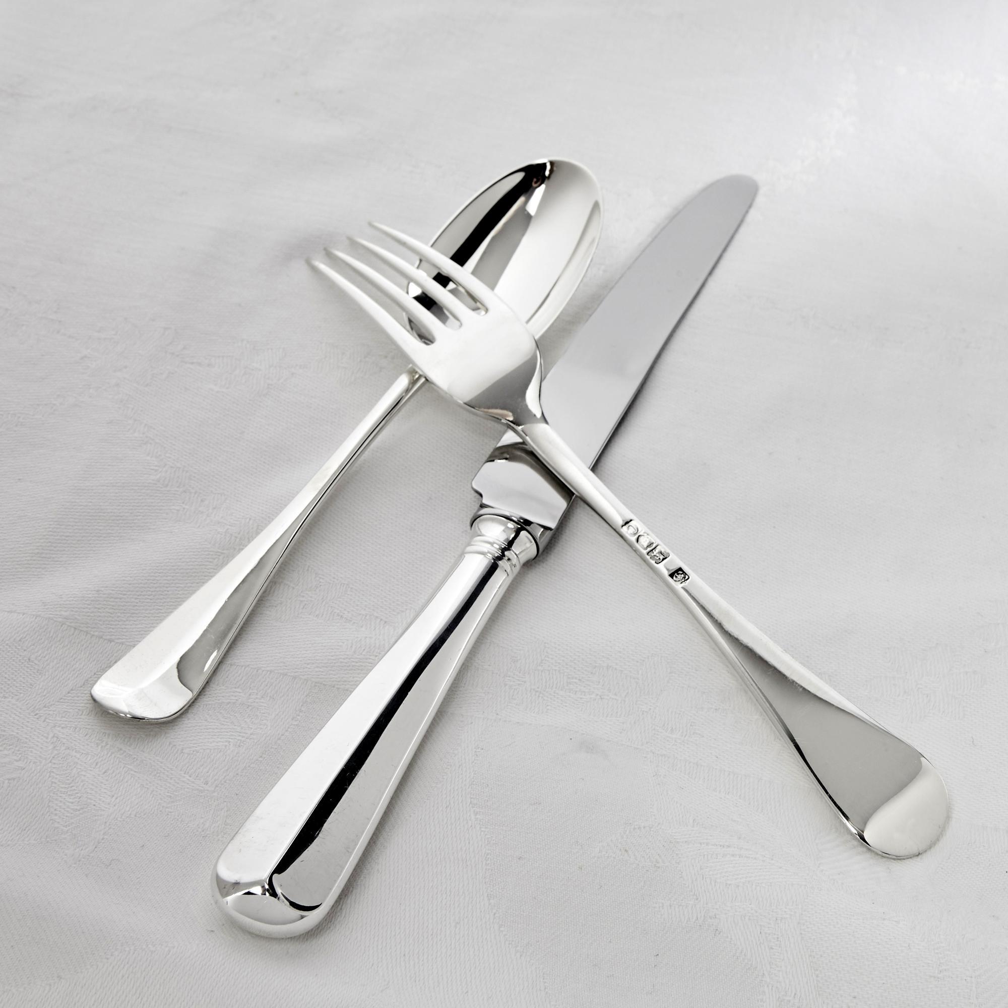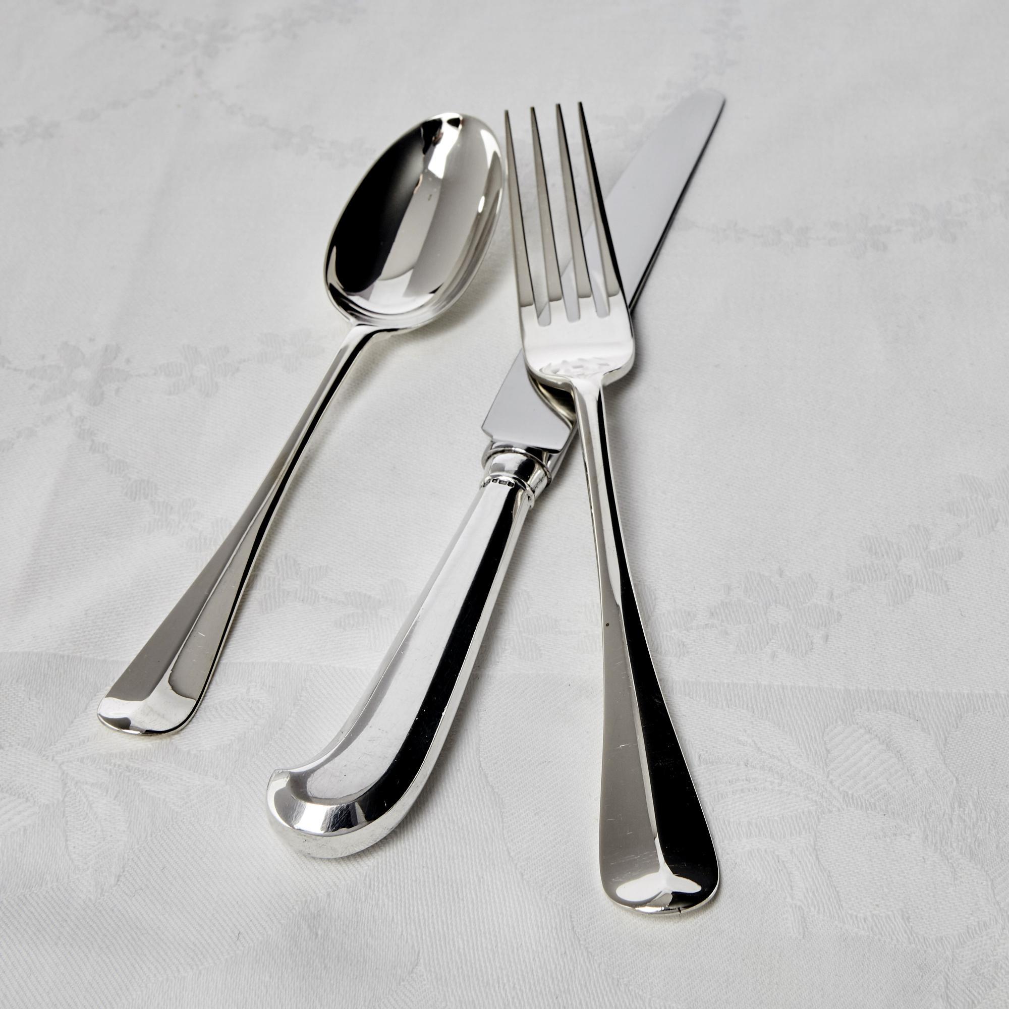 Since antique knives of any pattern rarely survive, we complete this cutlery set with 18 pairs of sterling silver table and dessert knives in the Rattail, Old English or Old English Pip patterns, fitted with stainless steel blades making them suitable for putting in the dishwasher.
