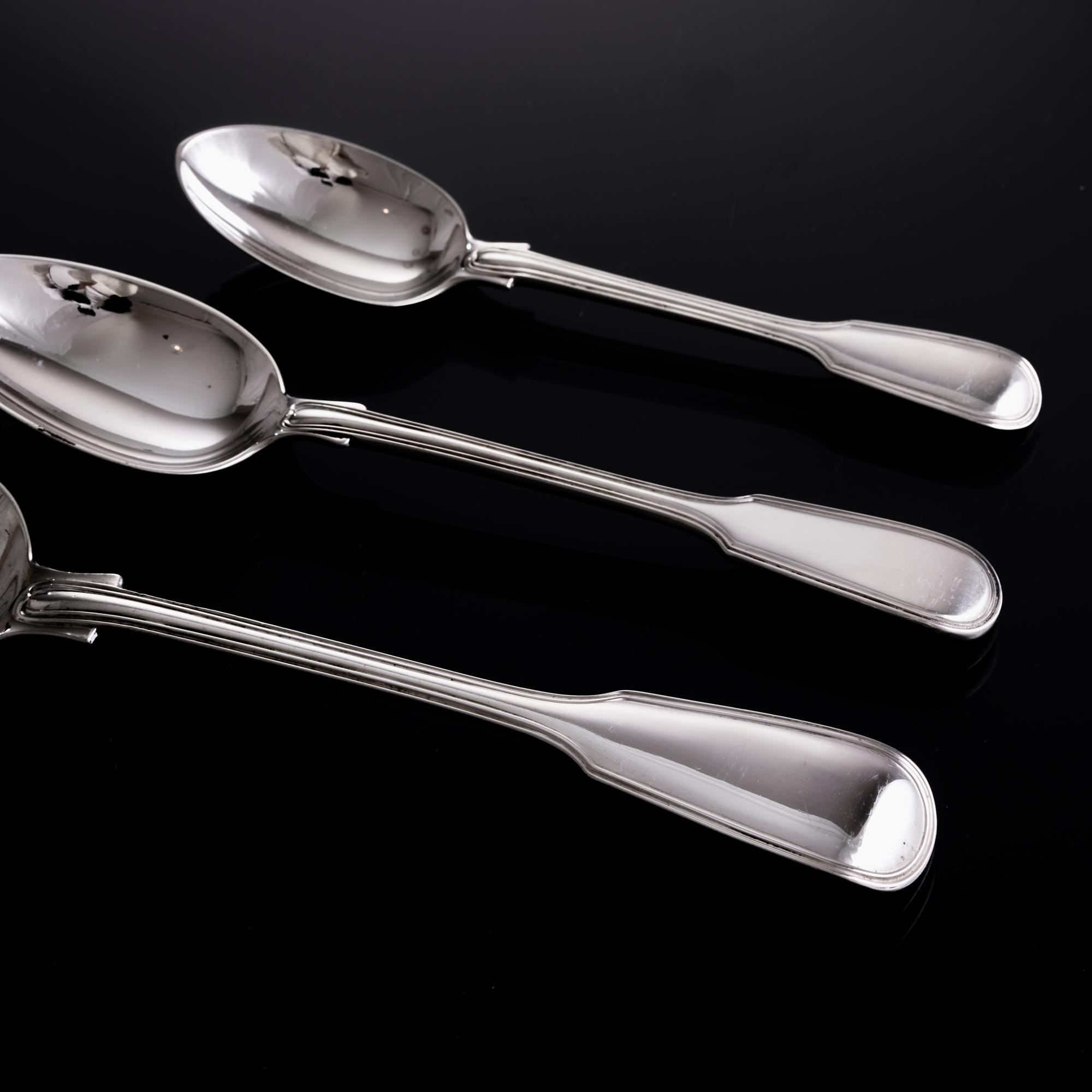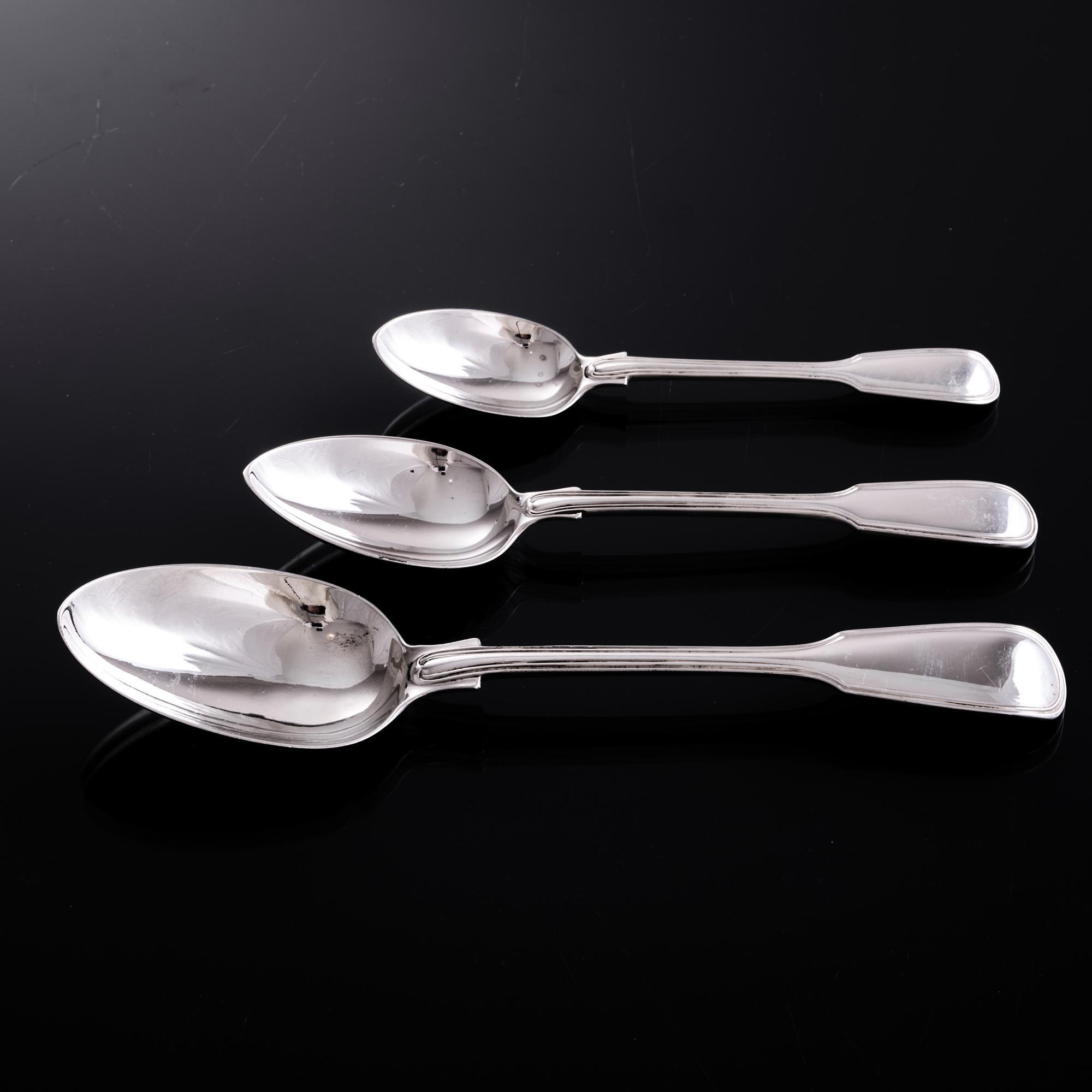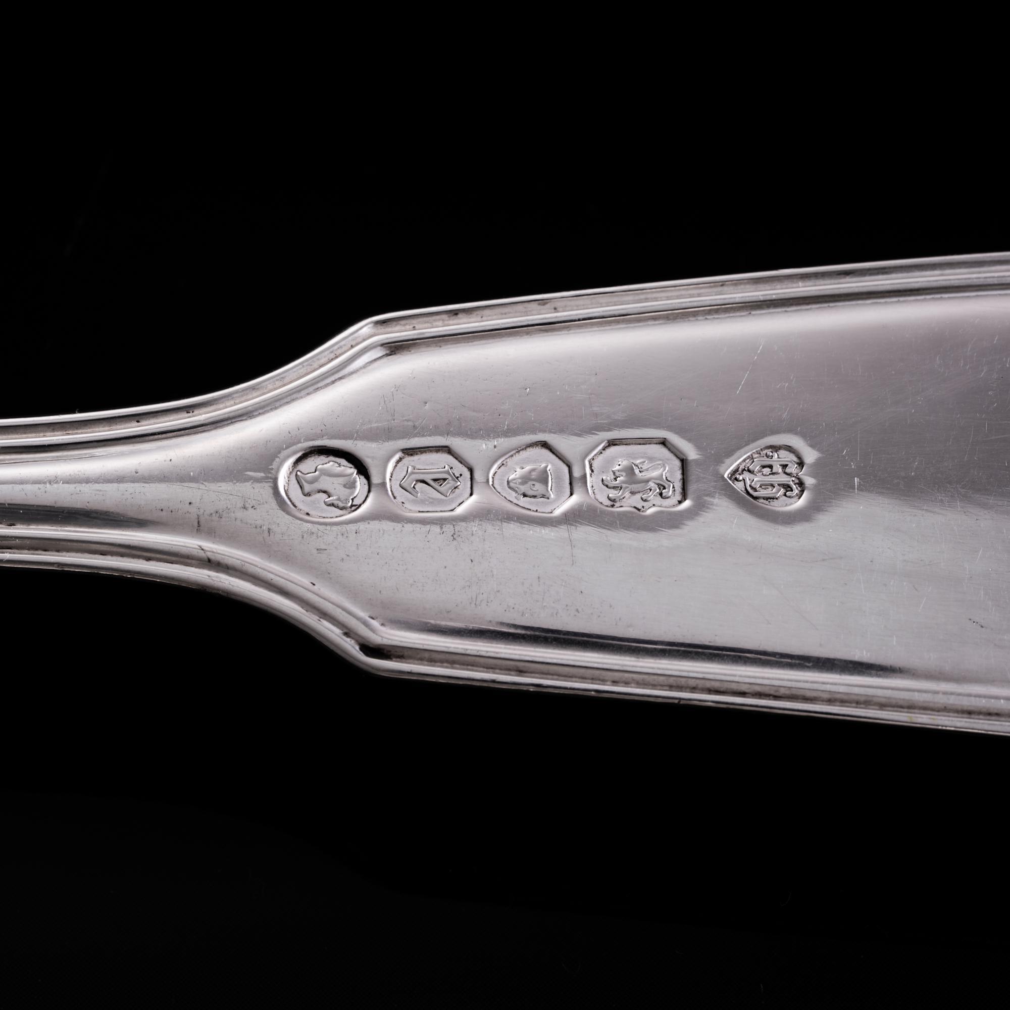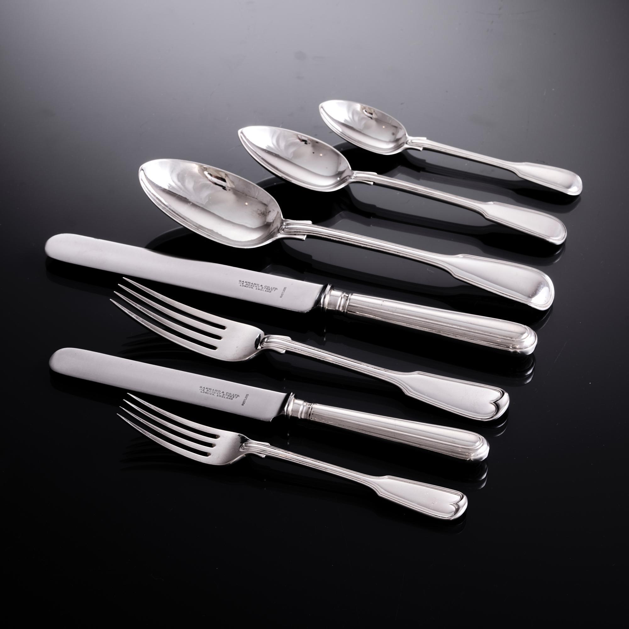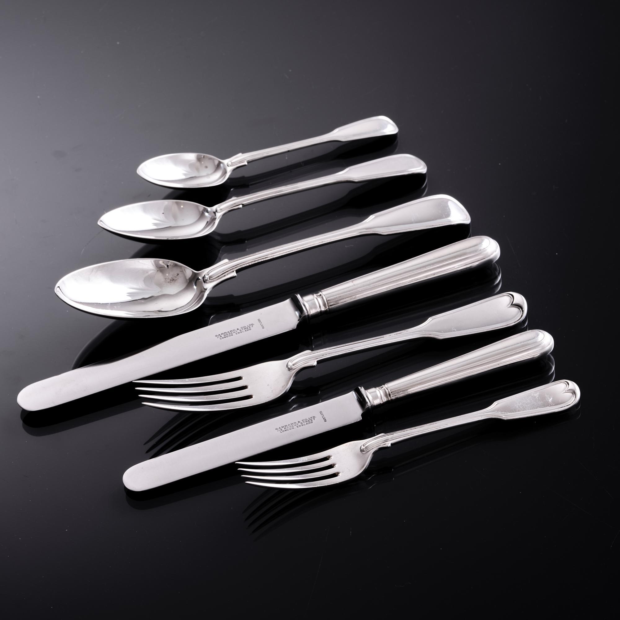 Set of Victorian hand-forged Fiddle & Thread pattern sterling silver cutlery for 12