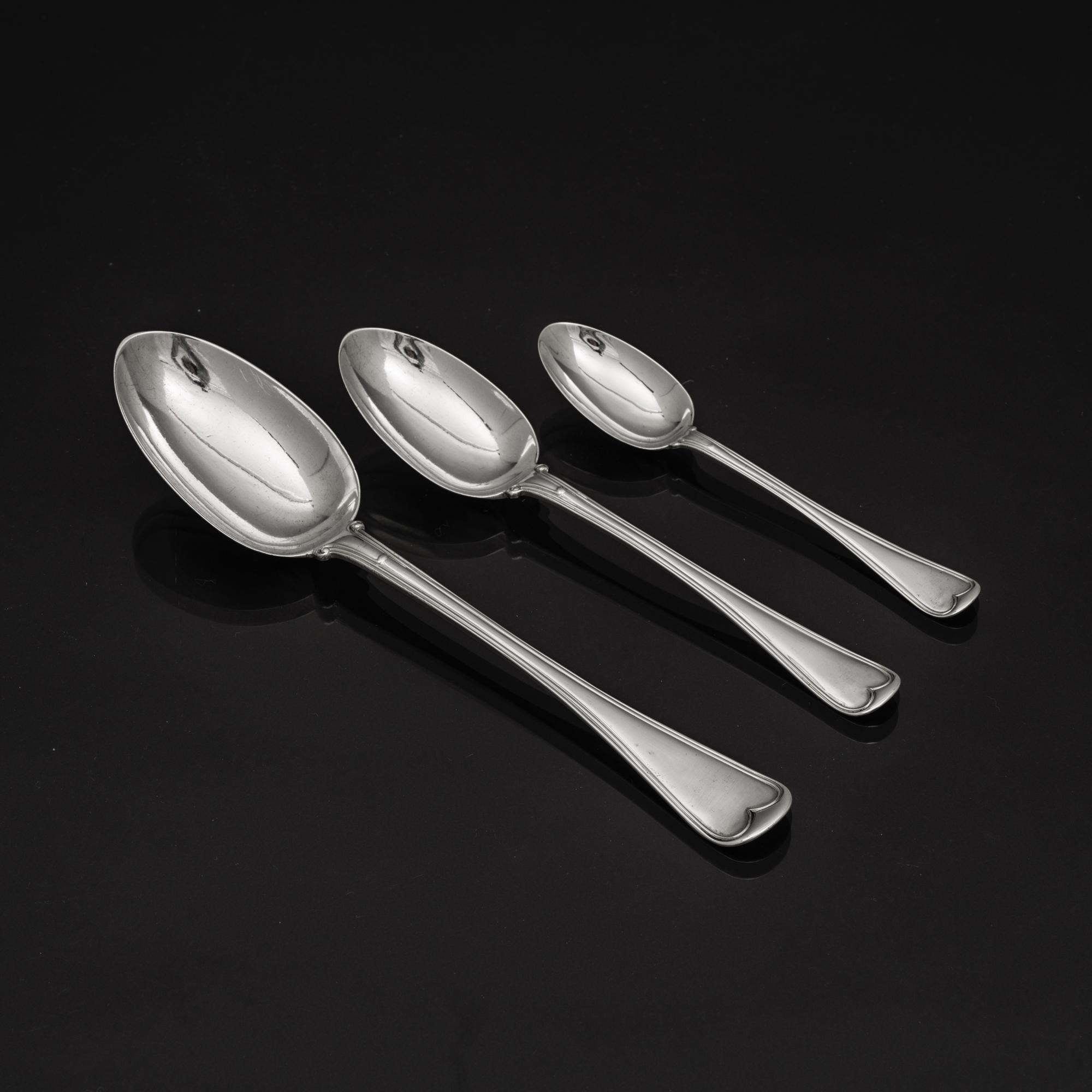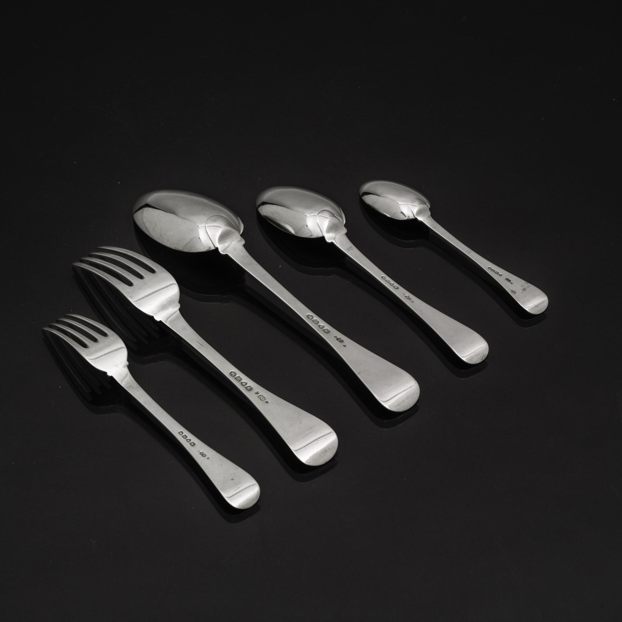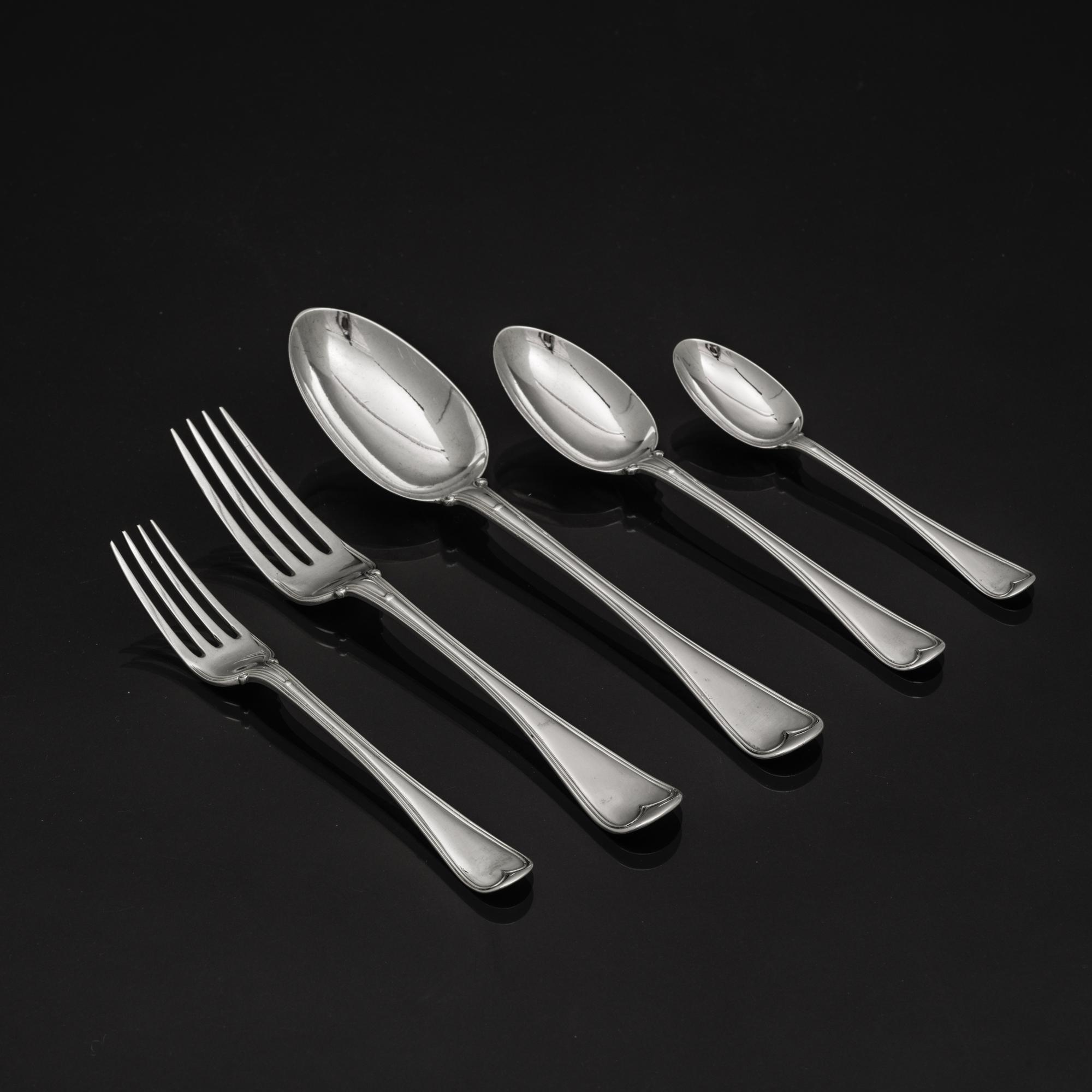 - Set of Victorian hand-forged one-date-and-maker Old English Military Thread sterling silver cutlery for 12