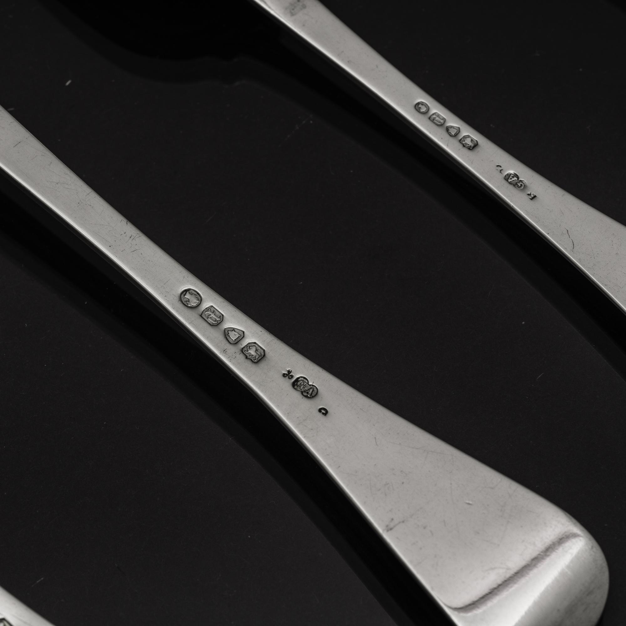 Since antique silver knives rarely survive, this cutlery set can be completed with 12 pairs of modern table and dessert knives in the Old English Thread pattern for an additional sum. They feature sterling silver handles and stainless steel blades meaning they are safe to put in the dishwasher.