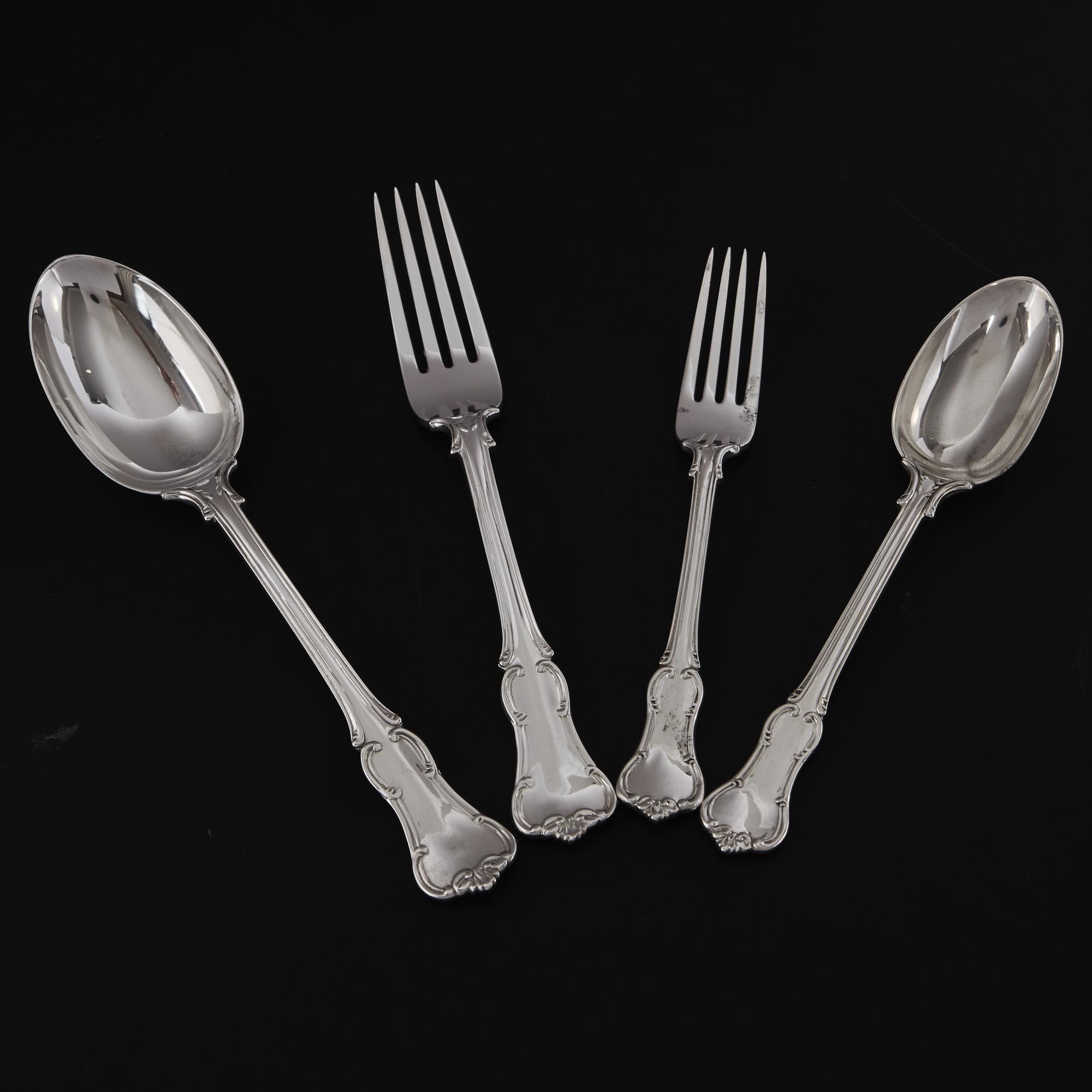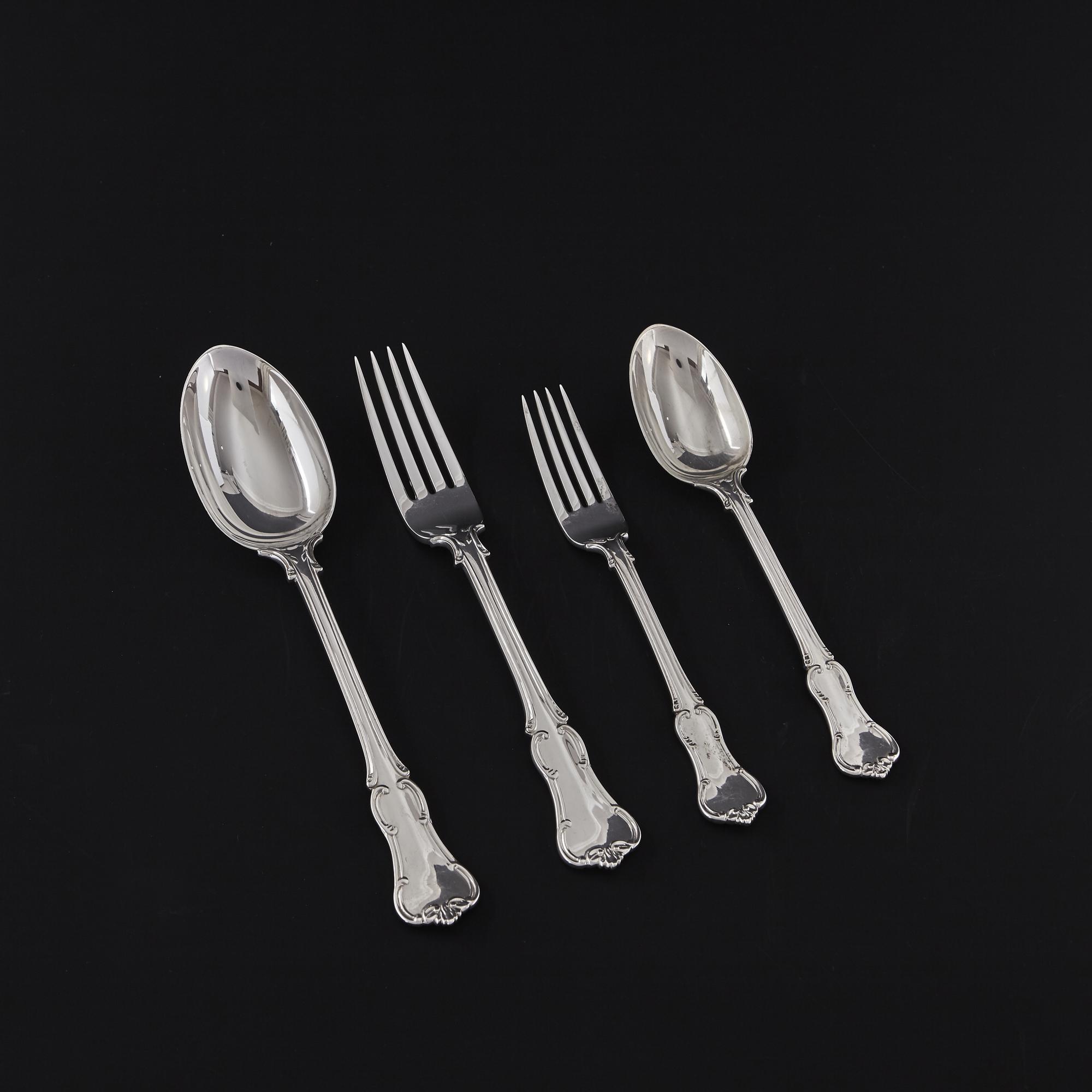 - Set of Victorian hand-forged Prince's antique silver cutlery for 24 in canteen