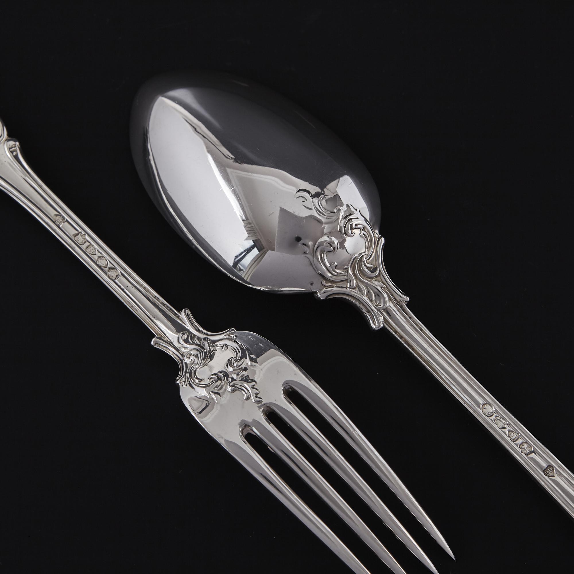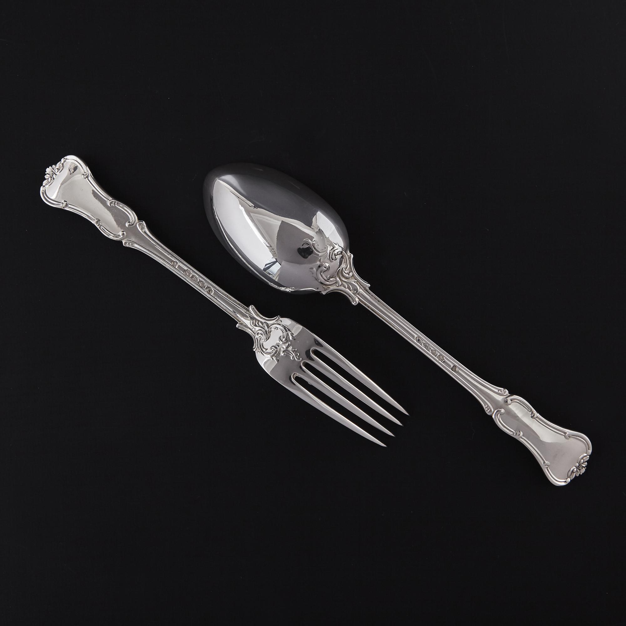 This fine silver cutlery service was made by Francis Higgins II of London, 1876-1878 unless otherwise indicated, and comprises: