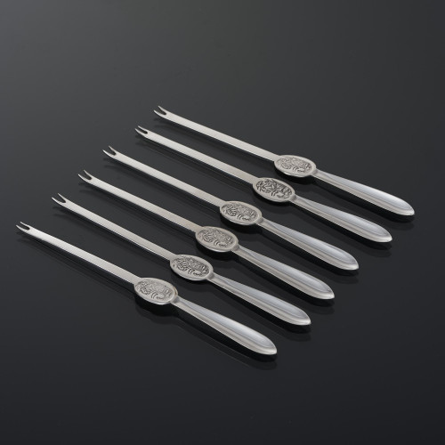 During the reign of Queen Anne (1707-1714), nearly all flatware was made in the Dog Nose, easily recognised by the distinctive shape at the top of the stem. The pattern is sometimes known as Shield Top and has strong resemblance to Trefid. It was made as early at the late 1690s until some time after 1715 but the pattern was revived in the late 19th century and is still made today.