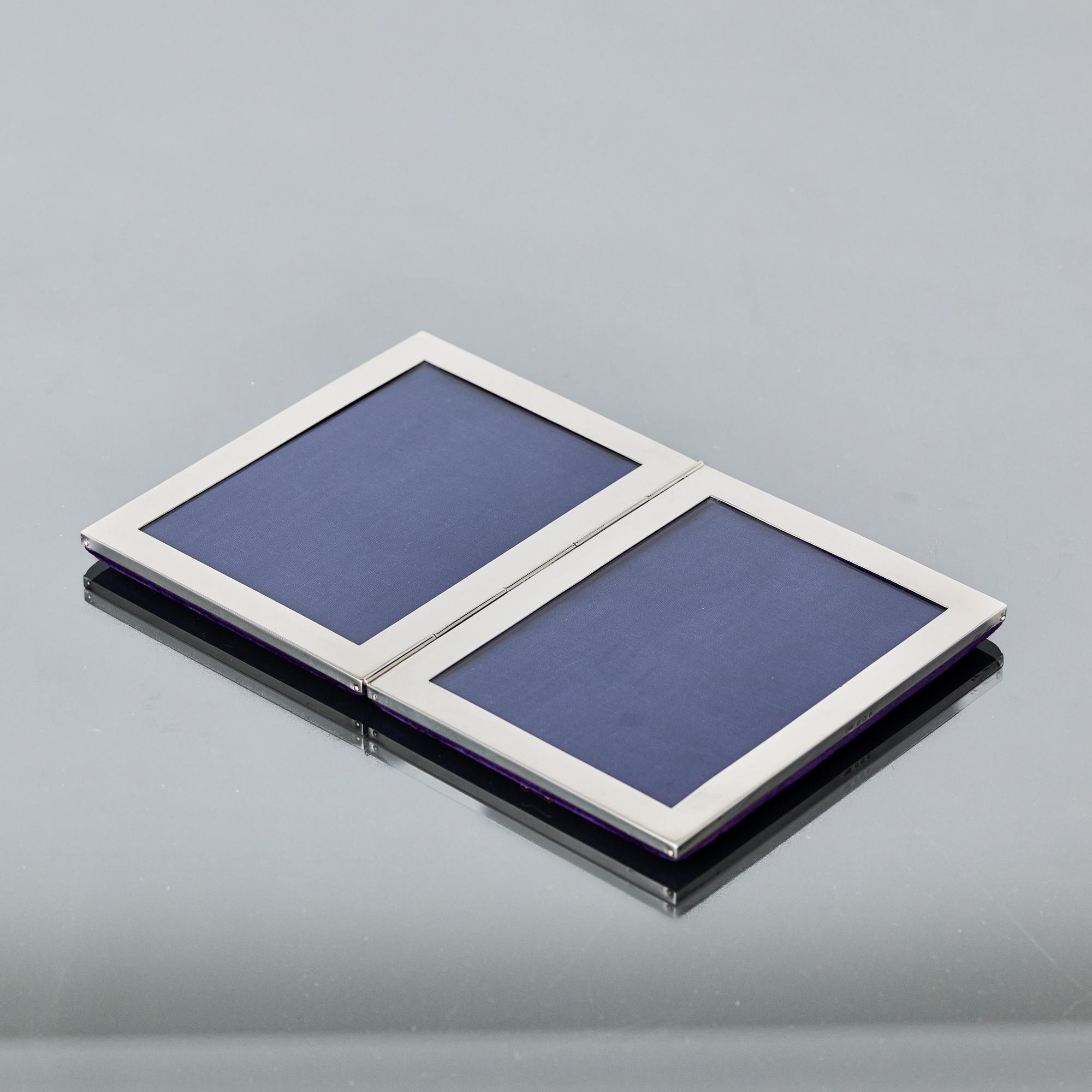 Simple and elegant handmade antique double silver photo frame with hinged centre.