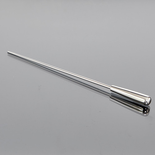A round sterling silver photograph frame with bevelled edge and topped with a cast silver bow. This frame has its original red leather back and the photograph aperture diameter is 100mm (4")
