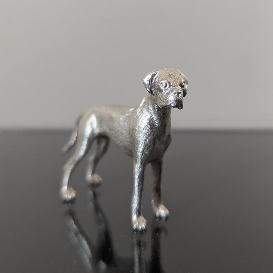 - Cast sterling silver model of a boxer dog
