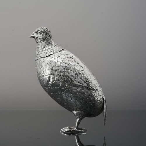 Cast and hand chased in fine detail, these two 800 standard silver model bears are of a mother and her bear cub. The realistic playful poses and substantial weight of silver make these lifelike models most desirable.