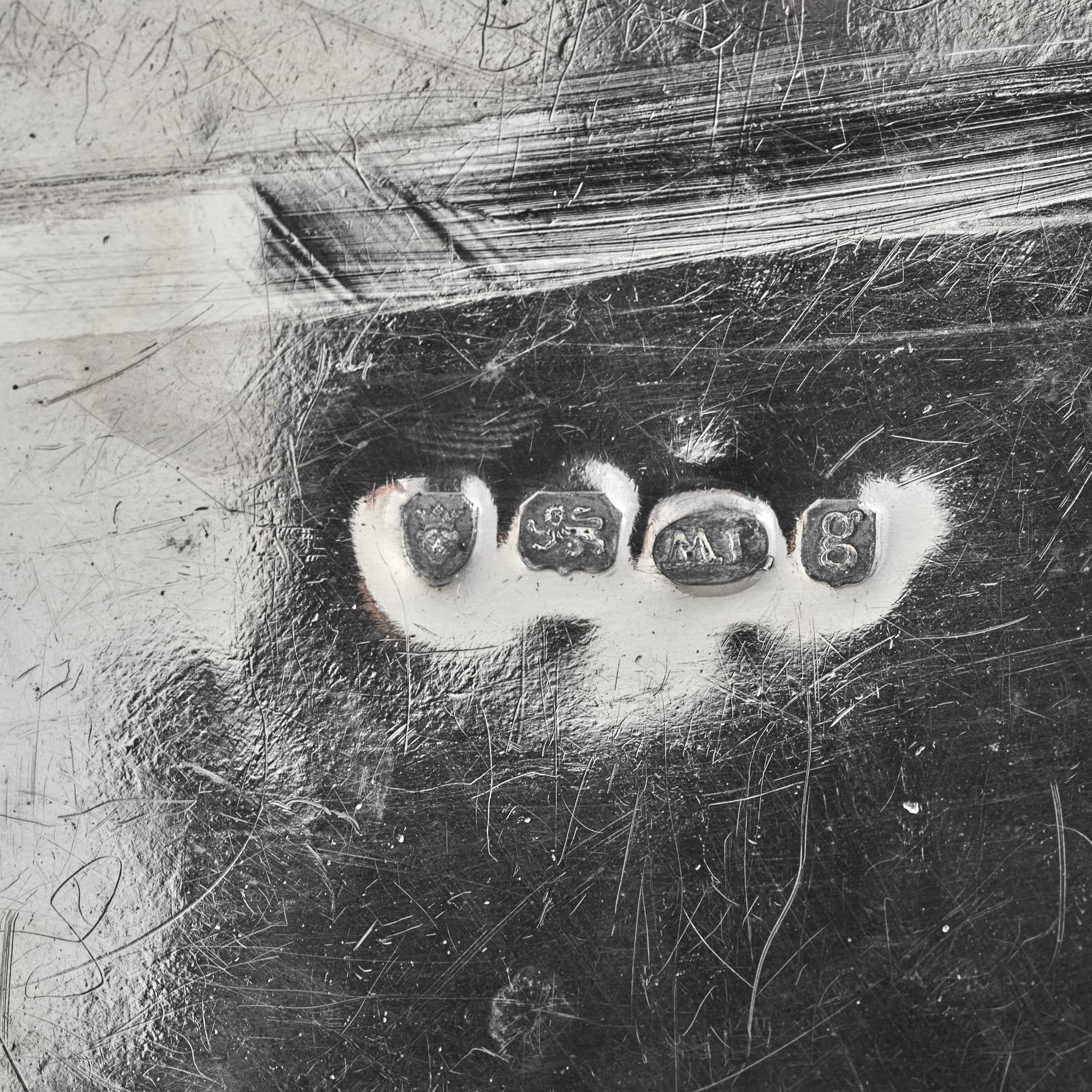 The excellent hallmarks on the base are sharp and the pot is also marked in the lid.  All in all, it is a particularly pretty example of a Georgian silver teapot and will serve approximately five cups of tea.