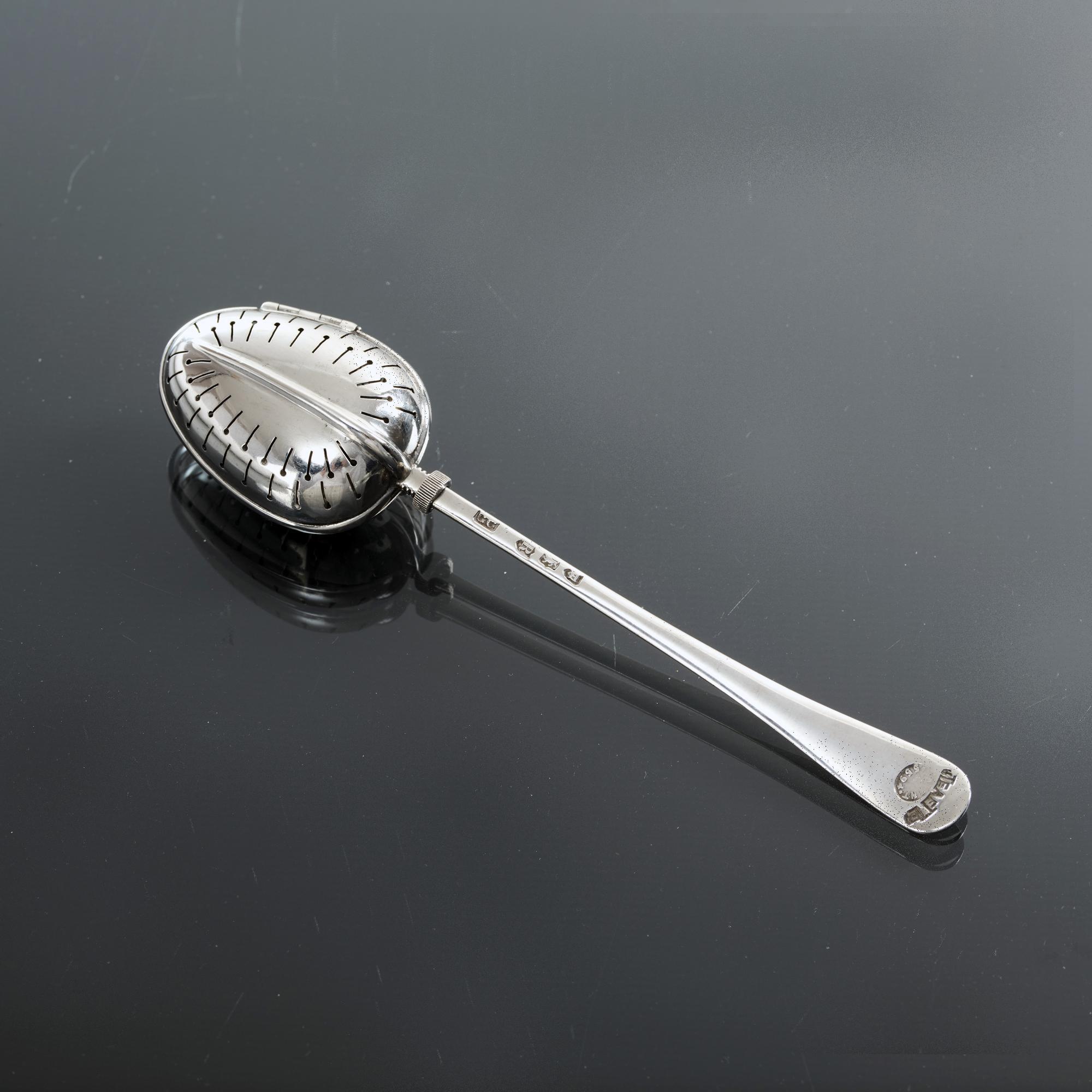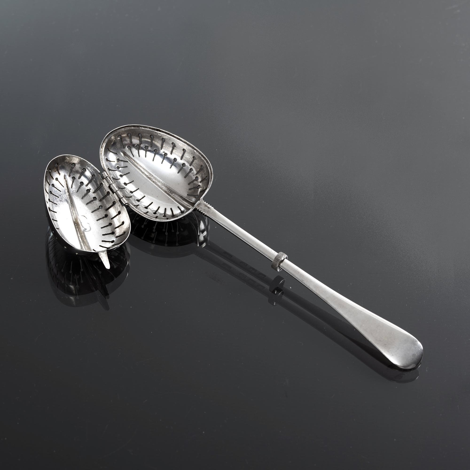 As the 19th century progressed, manufacturers began to develop teawares that reduced the labour of making tea. Gray designed it as a convenient and easily transportable utensil for travellers and caterers to brew a single cup of tea. It features a perforated spoon bowl with a hinged lid, designed to hold loose tea leaves for brewing a single cup by plunging it into boiling water and brew according to the drinker's taste.