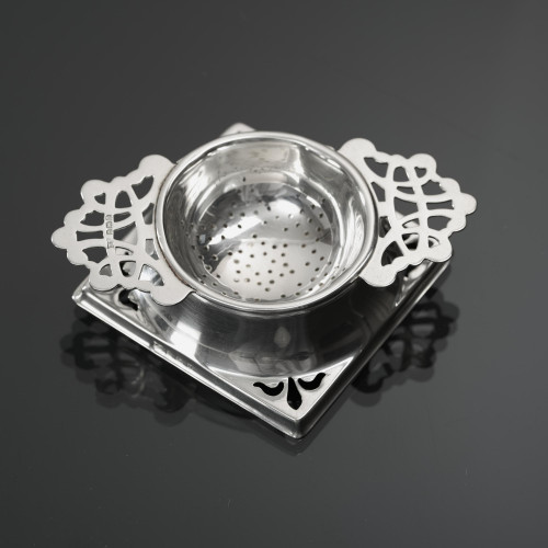 Documentation of tea strainers appears in ancient history, but it was the arrival and rise in popularity of loose-leaf tea in 17th-century Europe when they evolved from simple pierced bowls to ornate, decorative silver tea accessories for the wealthy, with designs varying from basket-shaped to those with stands, reflecting changing fashions and the ever-increasing pleasure in the ritual of tea drinking.
