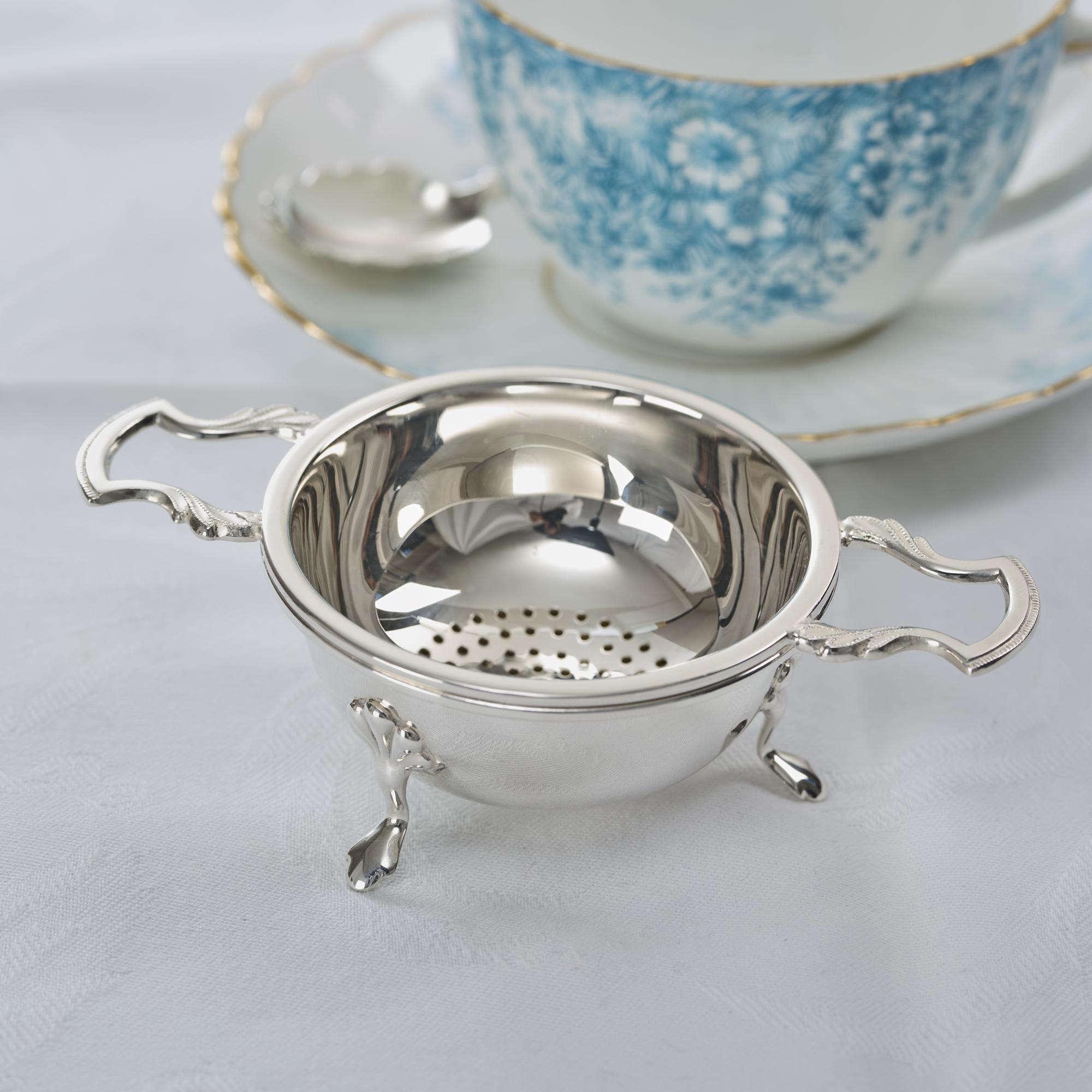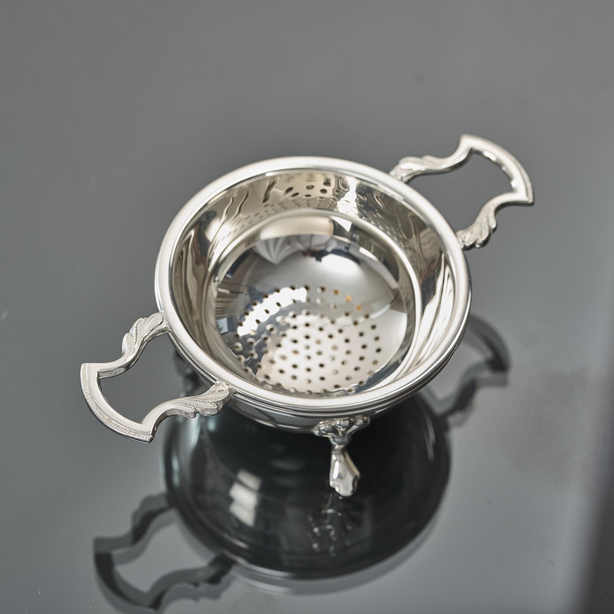 Silver tea strainer & stand