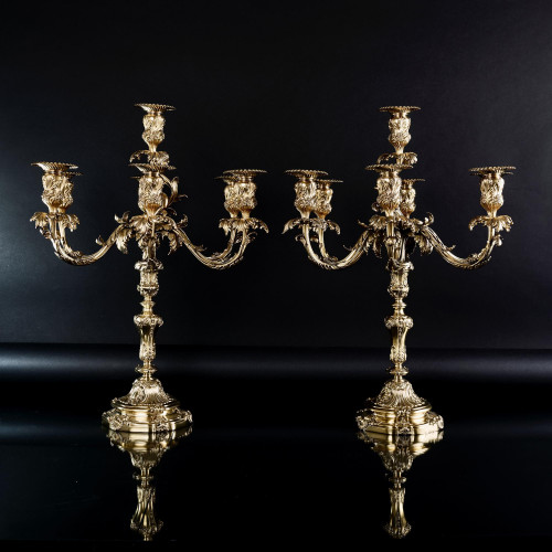- Pair of 2-branch 3-light neoclassical-style silver candelabra