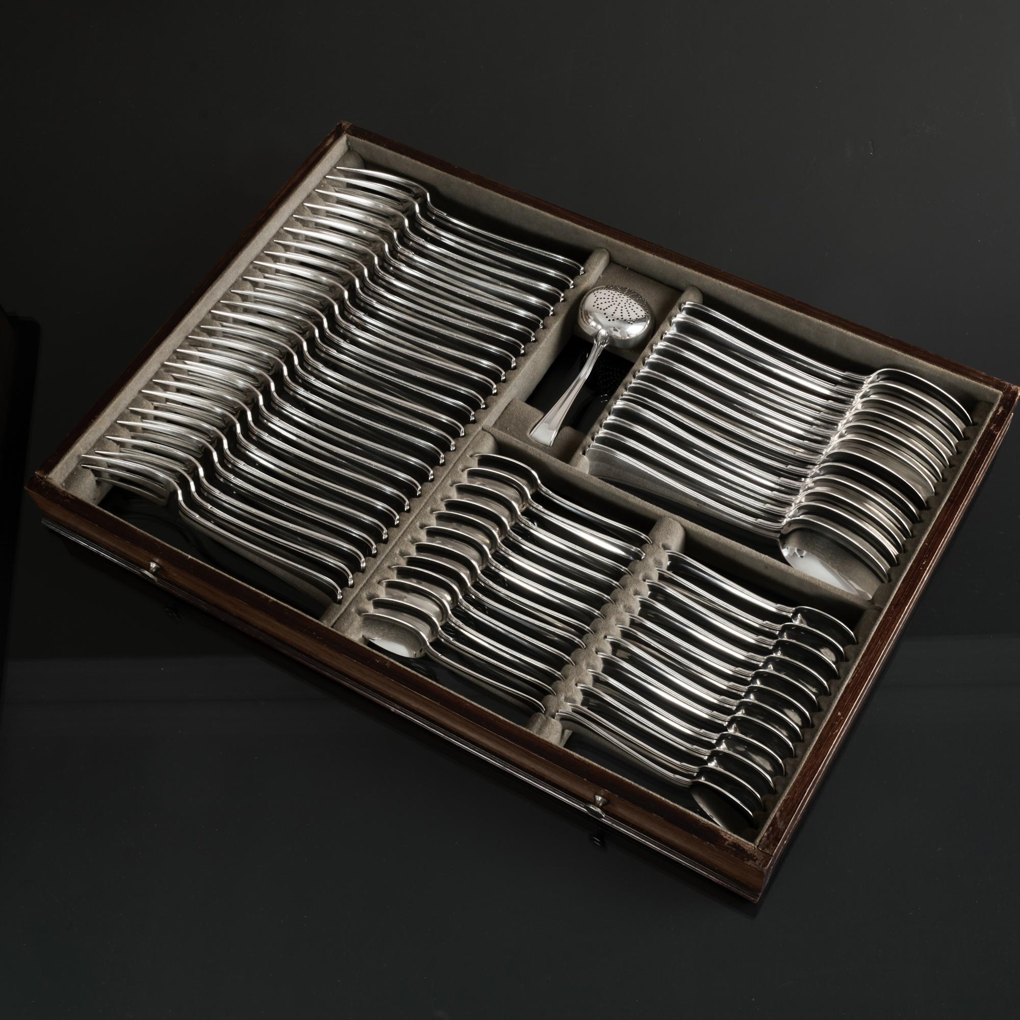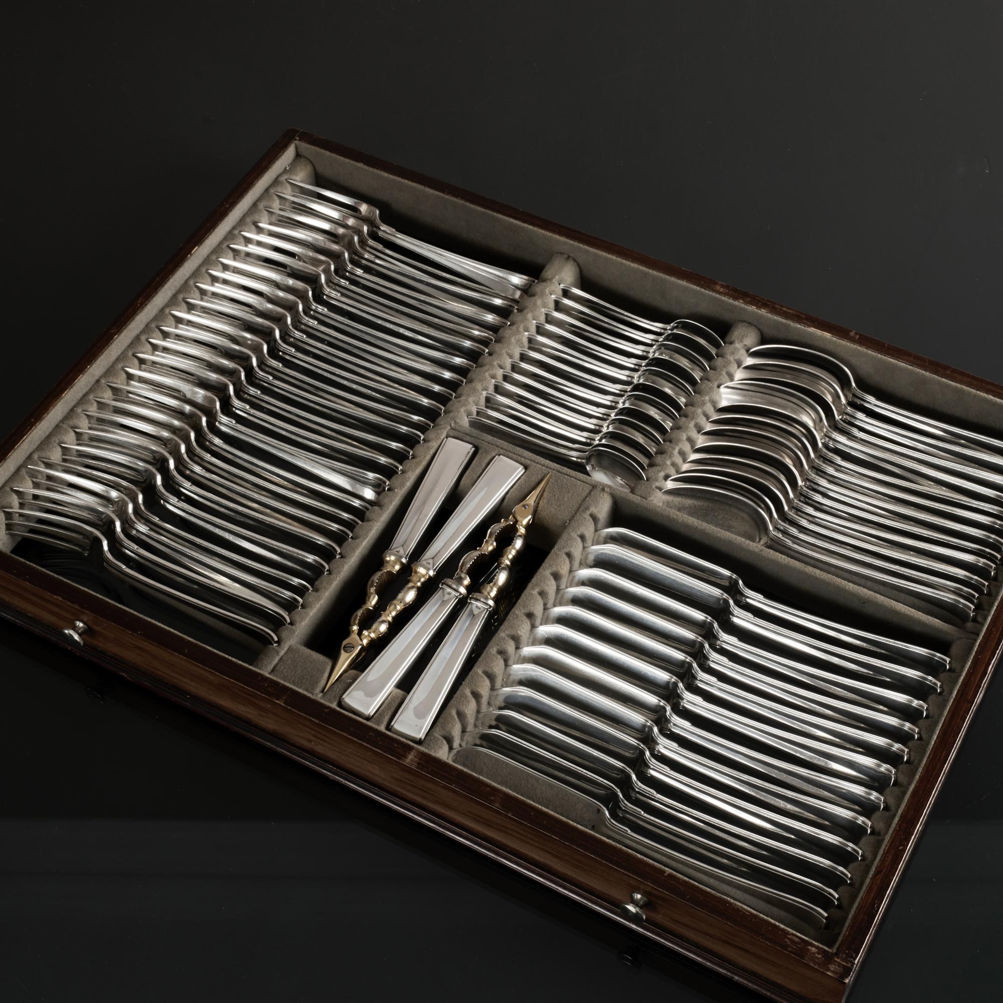 - Extensive set of Art Deco Italian silver cutlery for 24 in fitted canteen