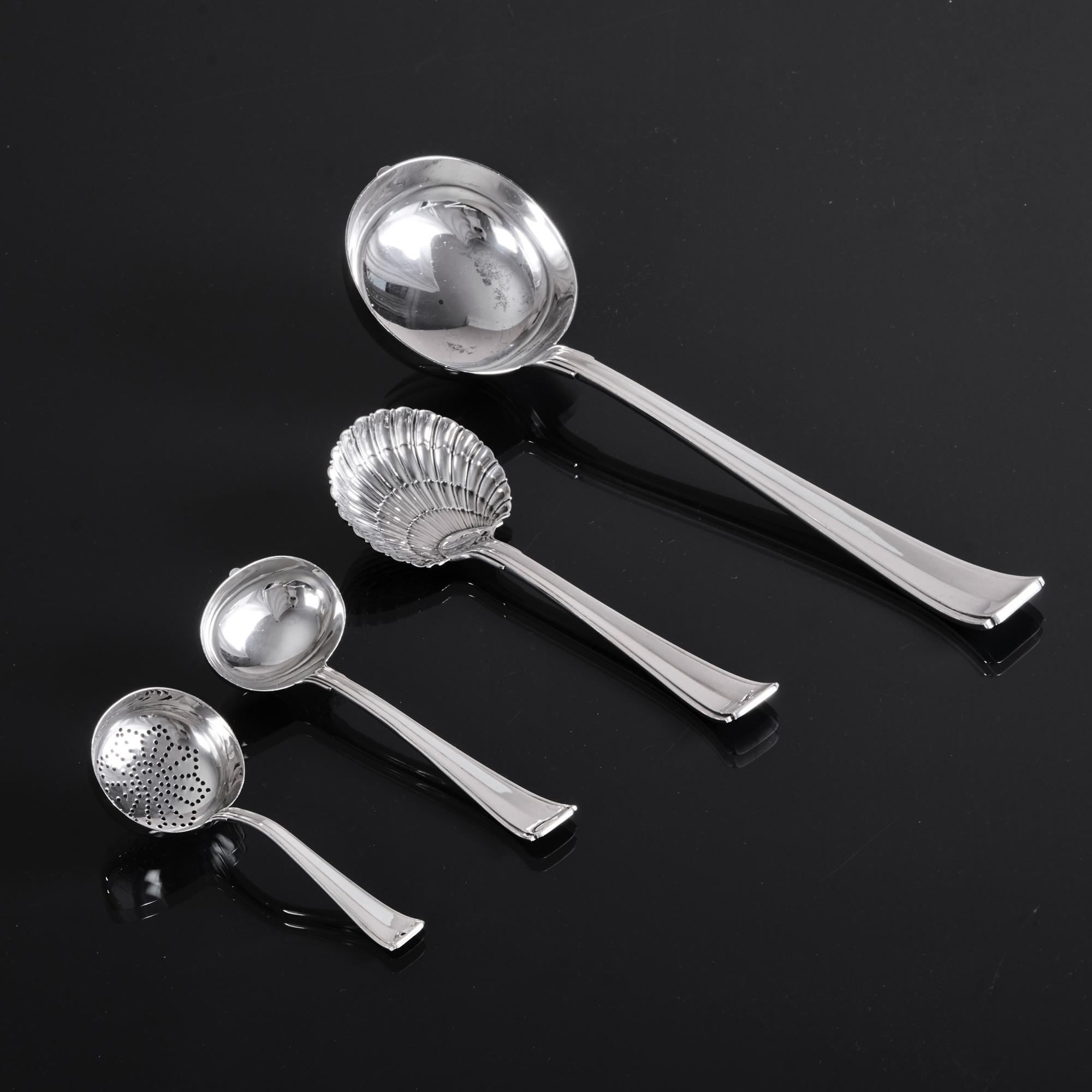 A set for up to 24 people, with additional dinner knives and forks, and a comprehensive selection of serving pieces, comprising: