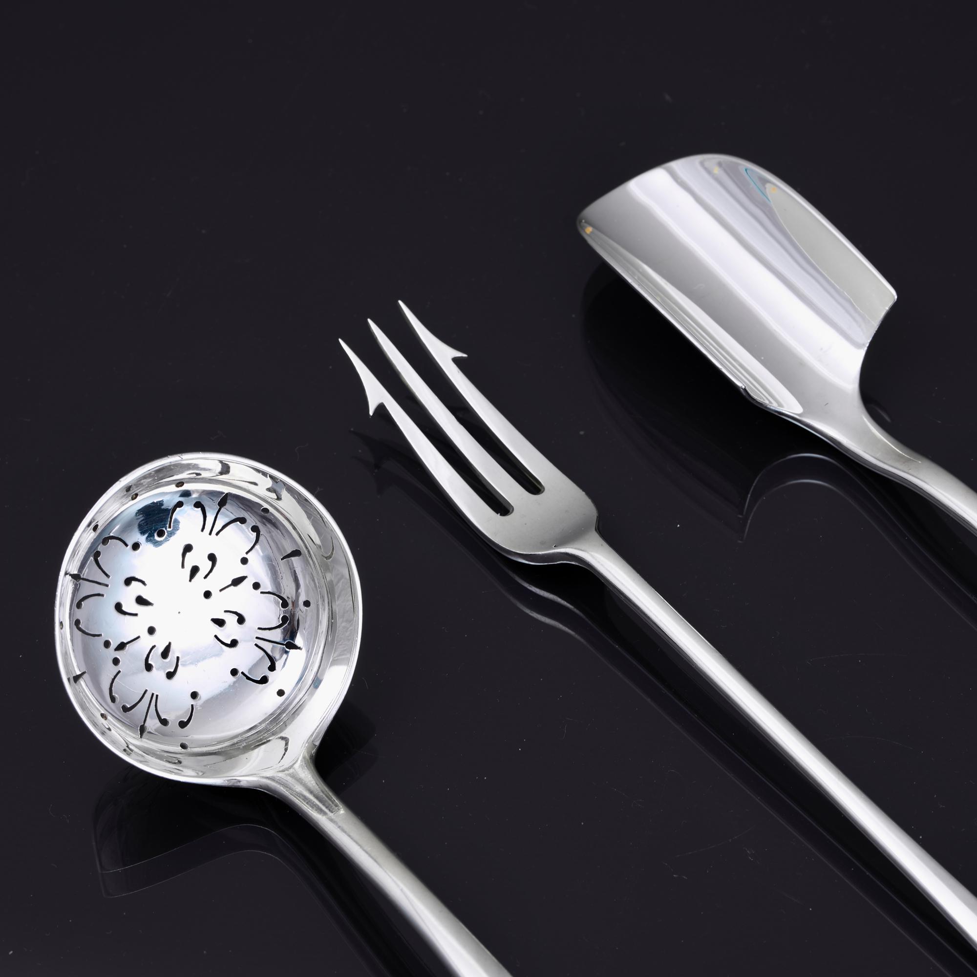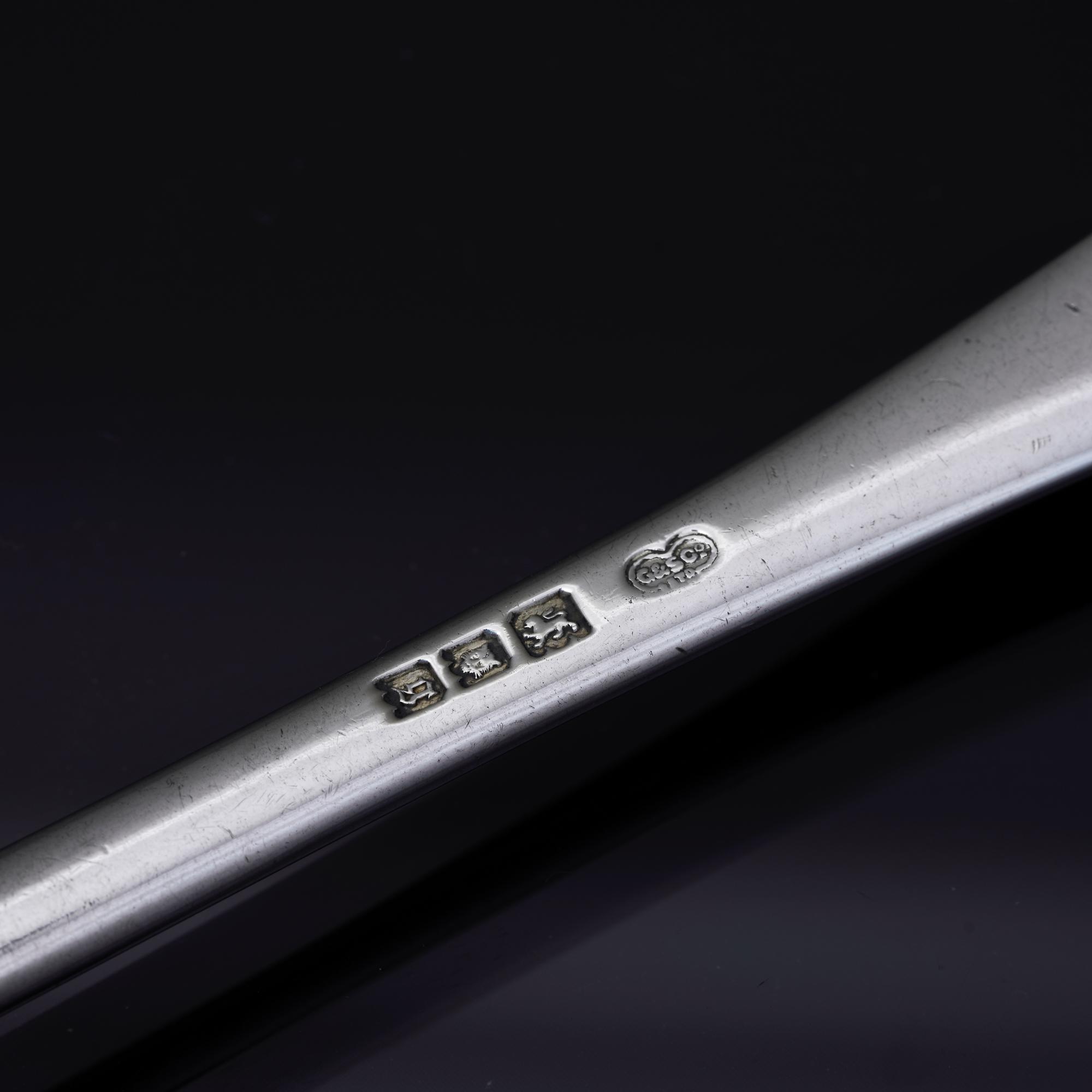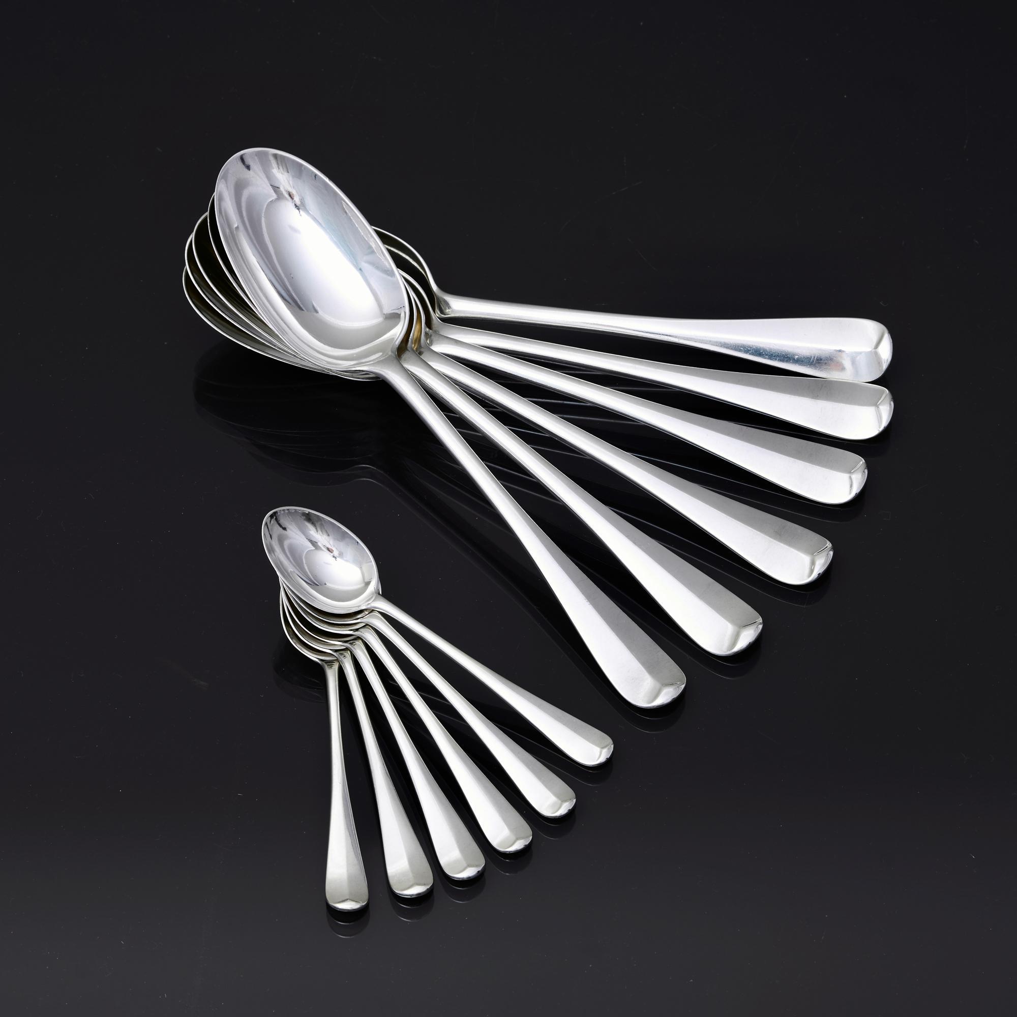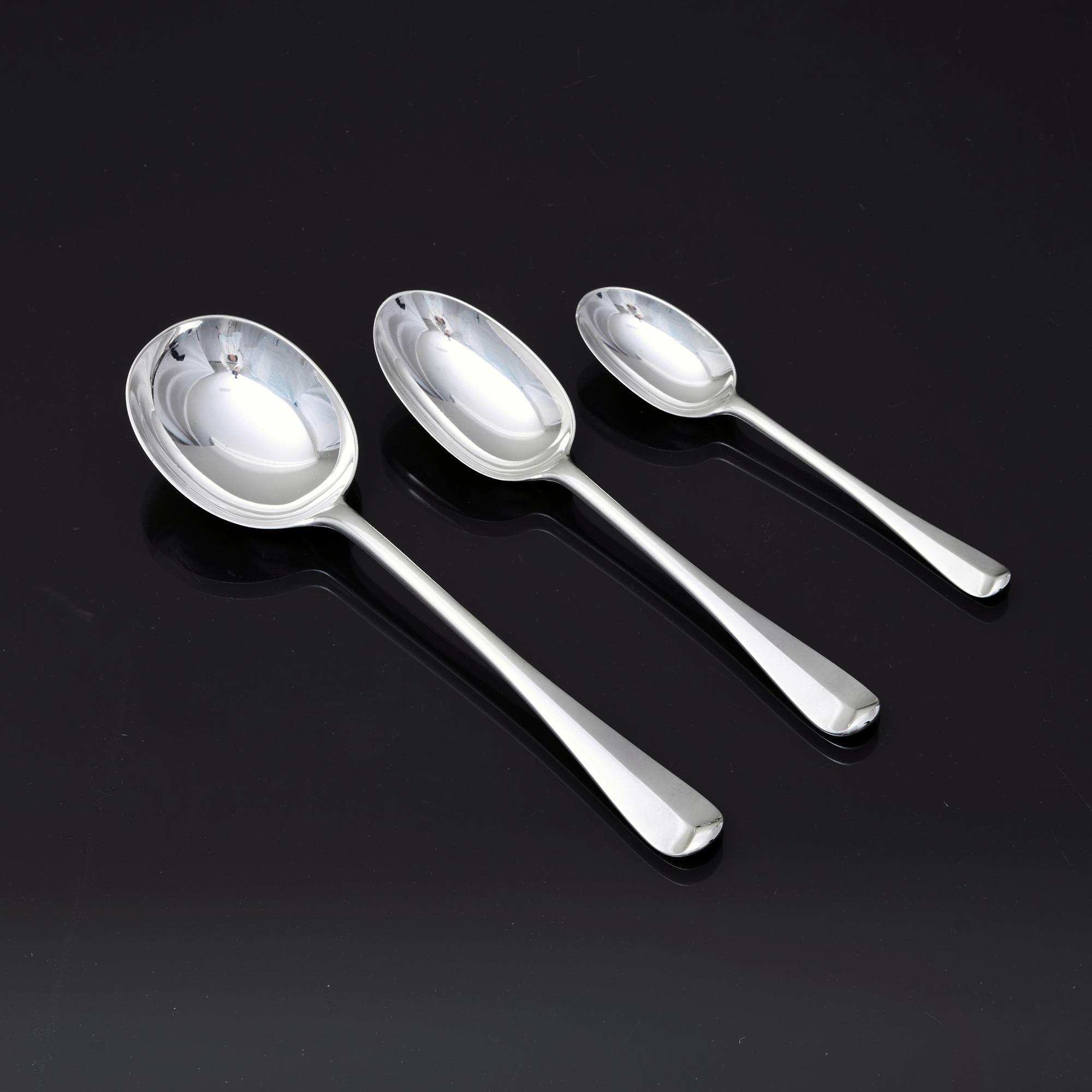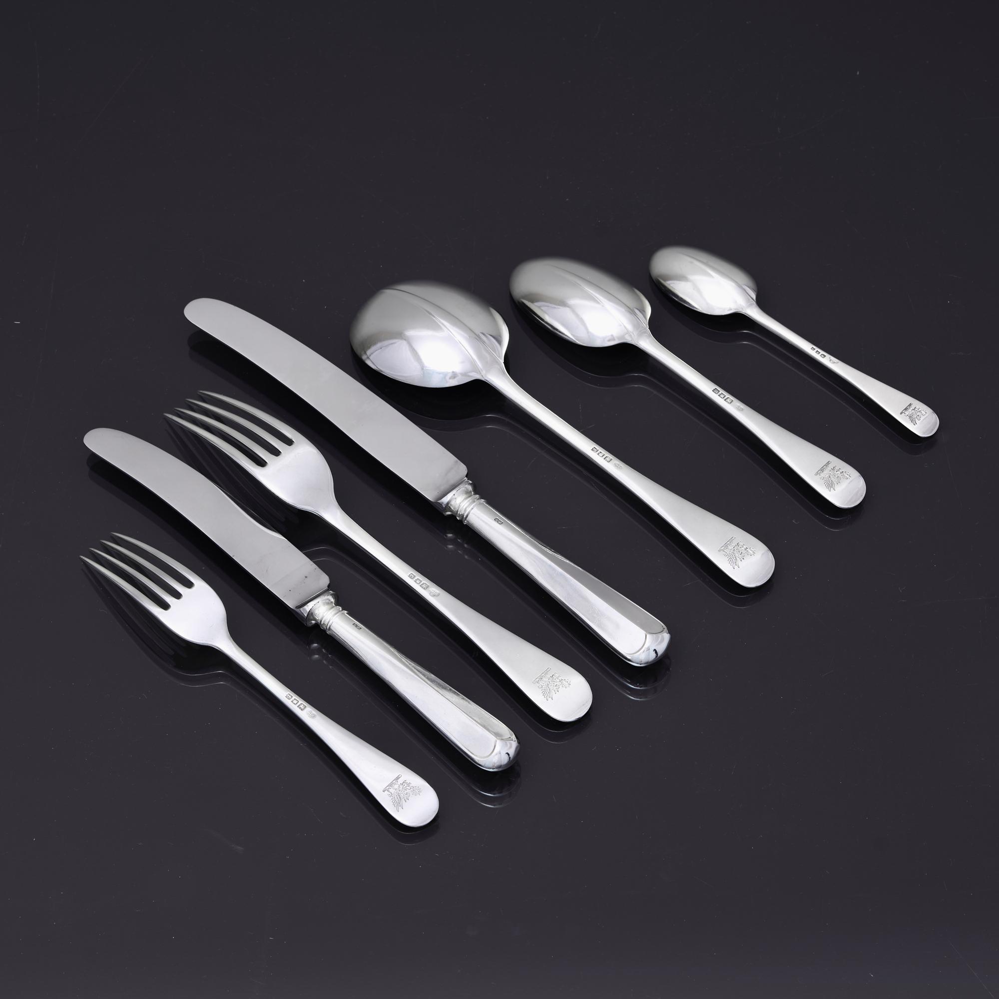 Also included are 12 pairs of modern silver table and dessert knives made by William Yates, Sheffield 1978. Fitted with stainless steel blades they are suitable for putting in the dishwasher.
