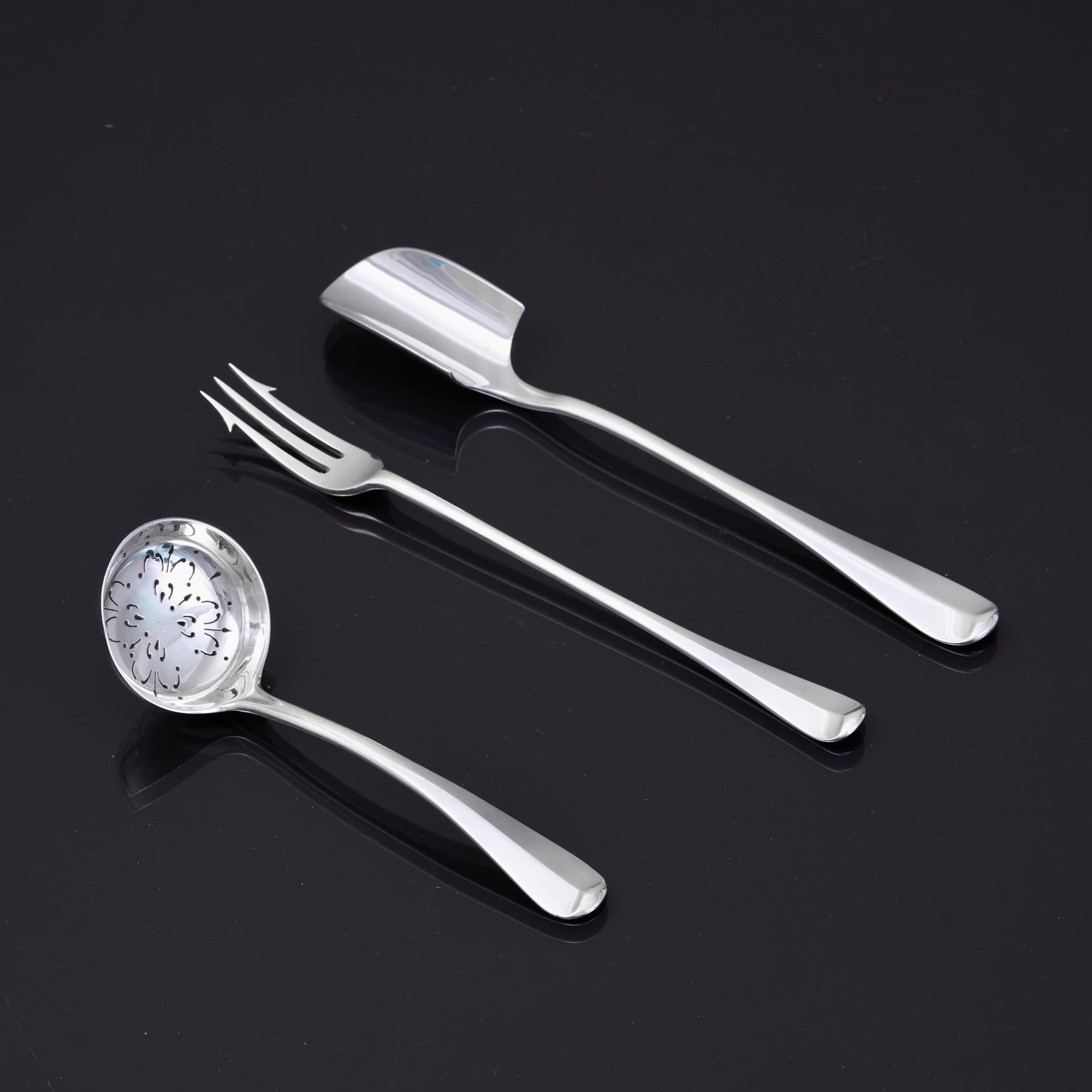 Set of 20th-century antique hand-forged 4-prong Rattail sterling silver cutlery for 12
