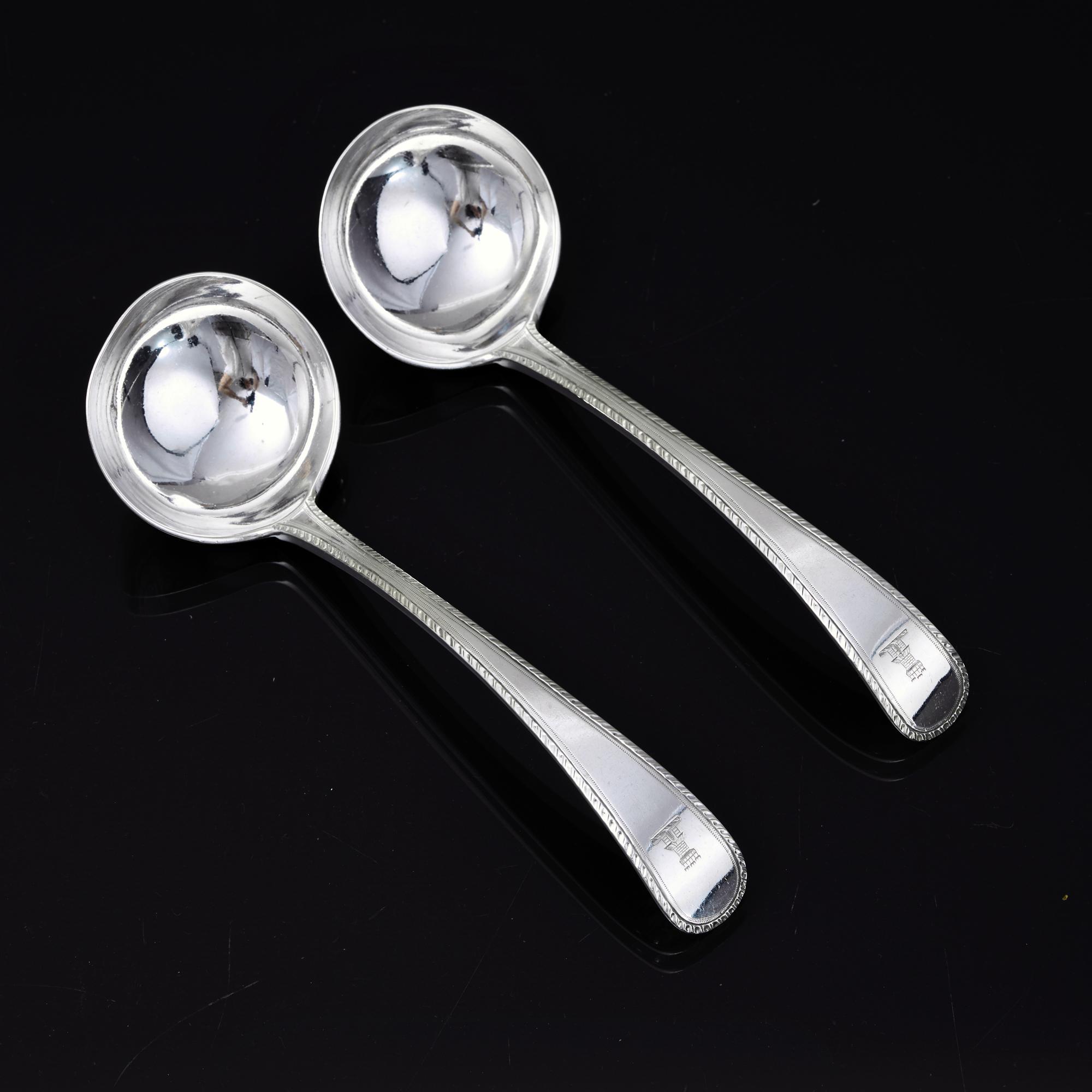 This is a fine recreation of a late-18th-century Featheredge silver cutlery pattern, made at the beginning of the 20th century by Jackson and Fullerton who produced some of the heaviest and finest quality silver cutlery of the period, in most of the traditional patterns.