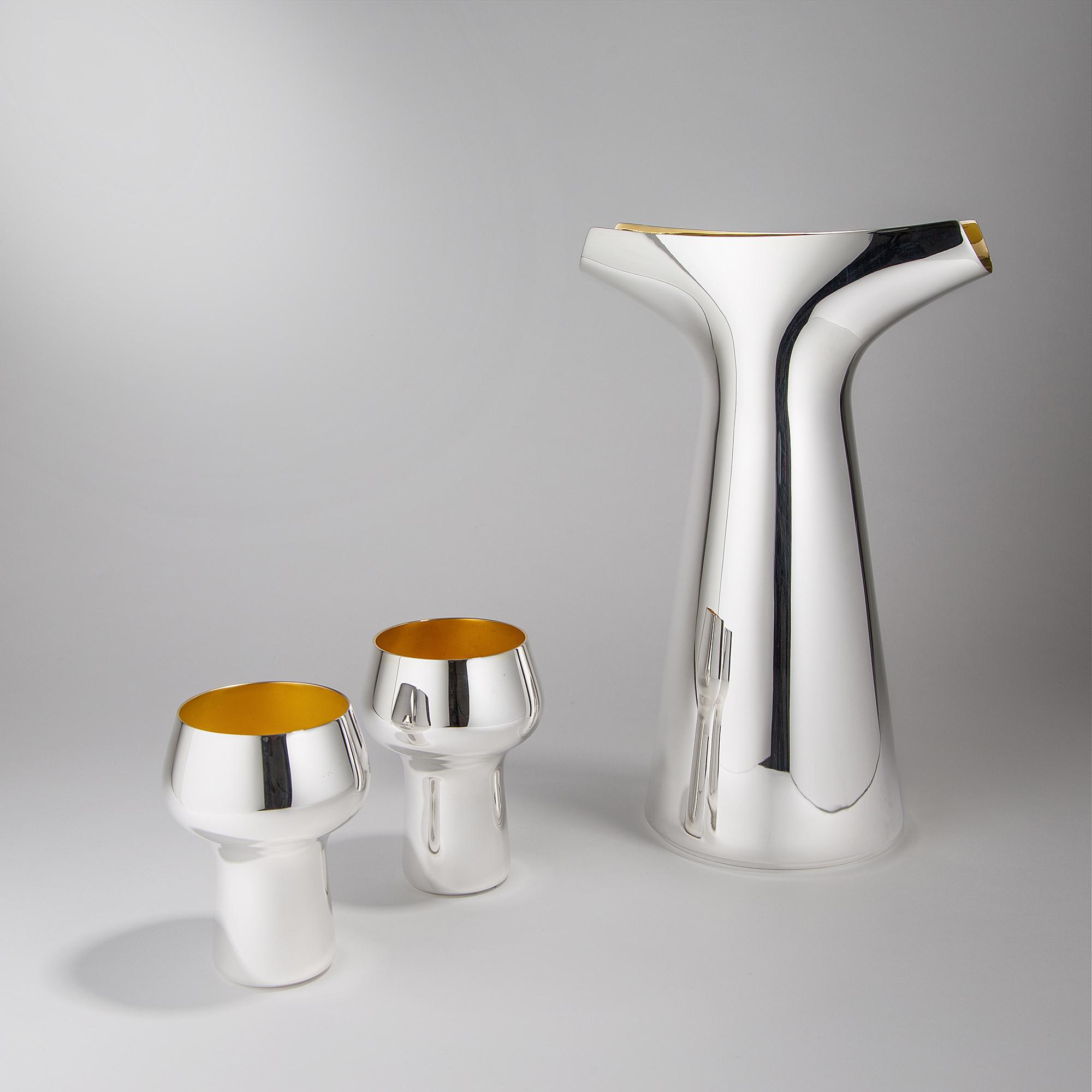 Don't underestimate the aesthetic and material research that Italian industrial designer, Giulio Iacchetti, invested in this super stylish silver plated wine goblet with gilded interior. Along with complementary wine jug and water tumbler he has designed these pieces for De Vecchi for a contemporary and more informal table setting called Tancredi & Bartolomeo.